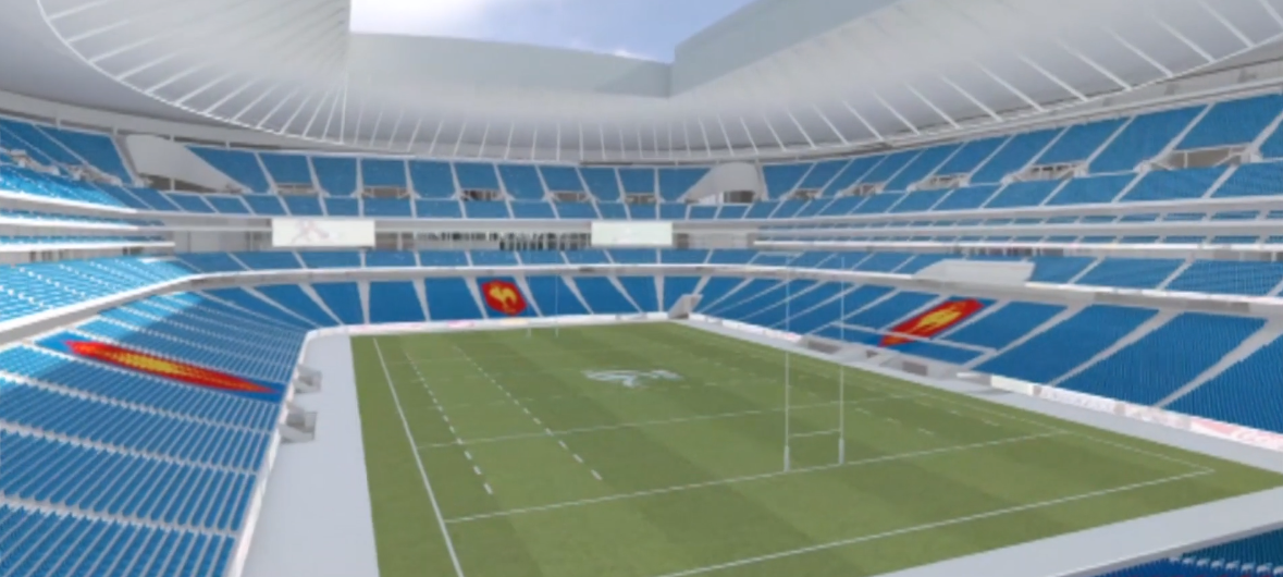 Là ils ont mis le paquet quand même, y a tout ce qui faut, toit rétractable et pelouse rétractable et + de 80 000 places aux couleurs de la FFR (un bleu plus sombre serait surement mieux mais bon ça sera affiné ça), l'aspect extérieur c'est très subjectif, moi j'aime pas mais bon d'autres vont adorer.