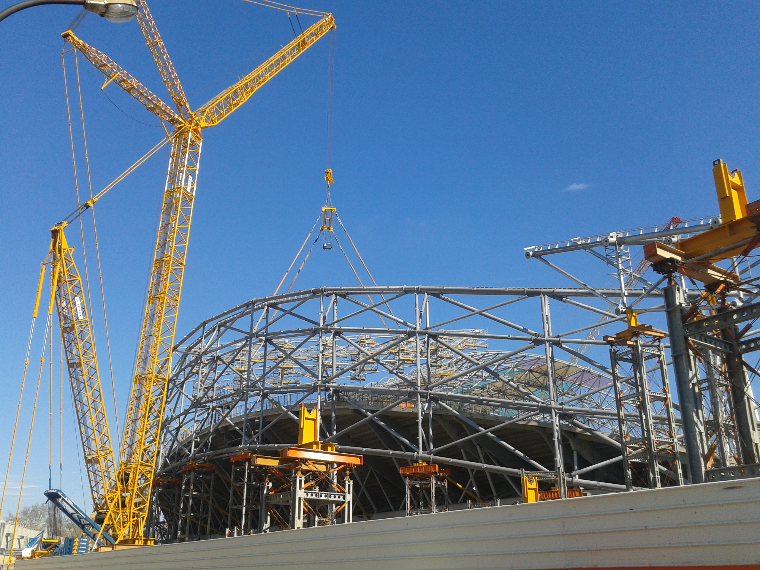 En gros pour comprendre la structure du stade il suffit de couper la charpente en 4 une coupe a la ligne médiane (rond central), et une ligne qui coupe la tribune en deux en deux partie égale. Ils ont bosser sur un SECTEUR de stade le reste étant que des symétries.