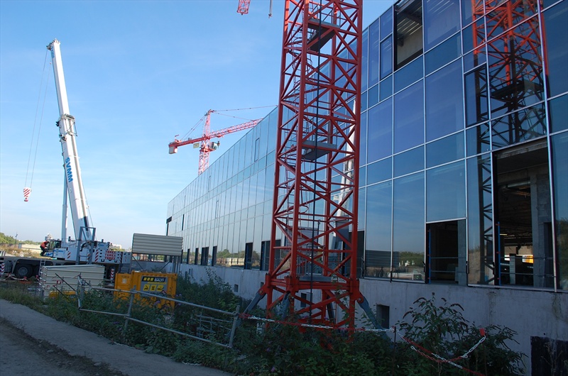 Les travaux, réalisés sous la direction de l'opérateur Sogea, filiale de Vinci Construction France, associé à Norpac, filiale de Bouygues Construction France, sont assurés pour l'ensemble des terrassements, fondations spéciales, gros oeuvre, charpente, couverture, étanchéité et menuiseries extérieures. La société Victoire est mandataire avec Sapiso des cloisons et menuiseries intérieures. Caronor (mandataire) avec MPK, Brackman et Eurodeco, est chargé des revêtements de sols et murs, de la peinture et de la signalétique. L'entreprise Loison doit réaliser la métallerie et Satelec, avec MQB, devrait s'occuper des lots techniques. Ramery TP avec ISS Espaces verts sont chargés des aménagements extérieurs.