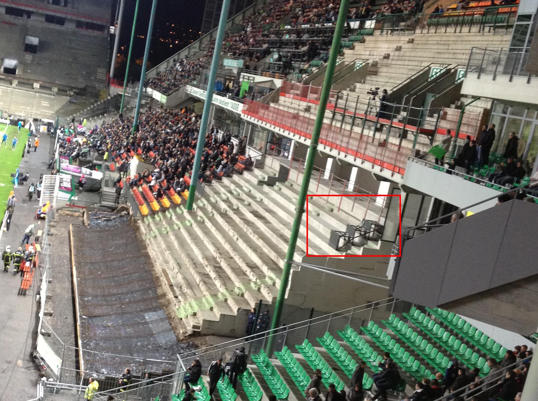 - tribune supérieure de l'angle nord-est exploitable pour les stéphanois