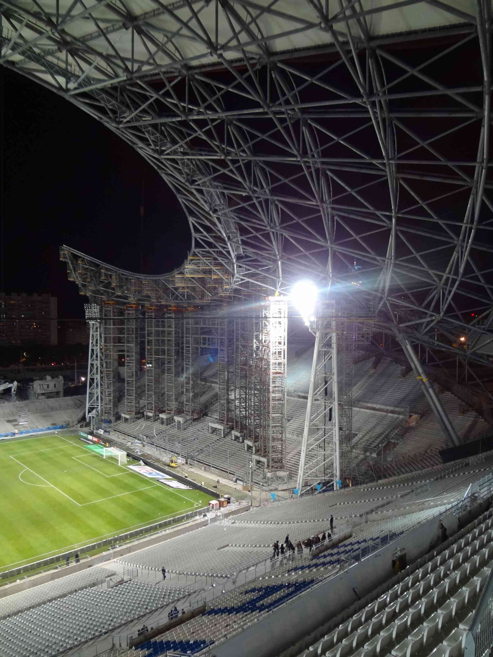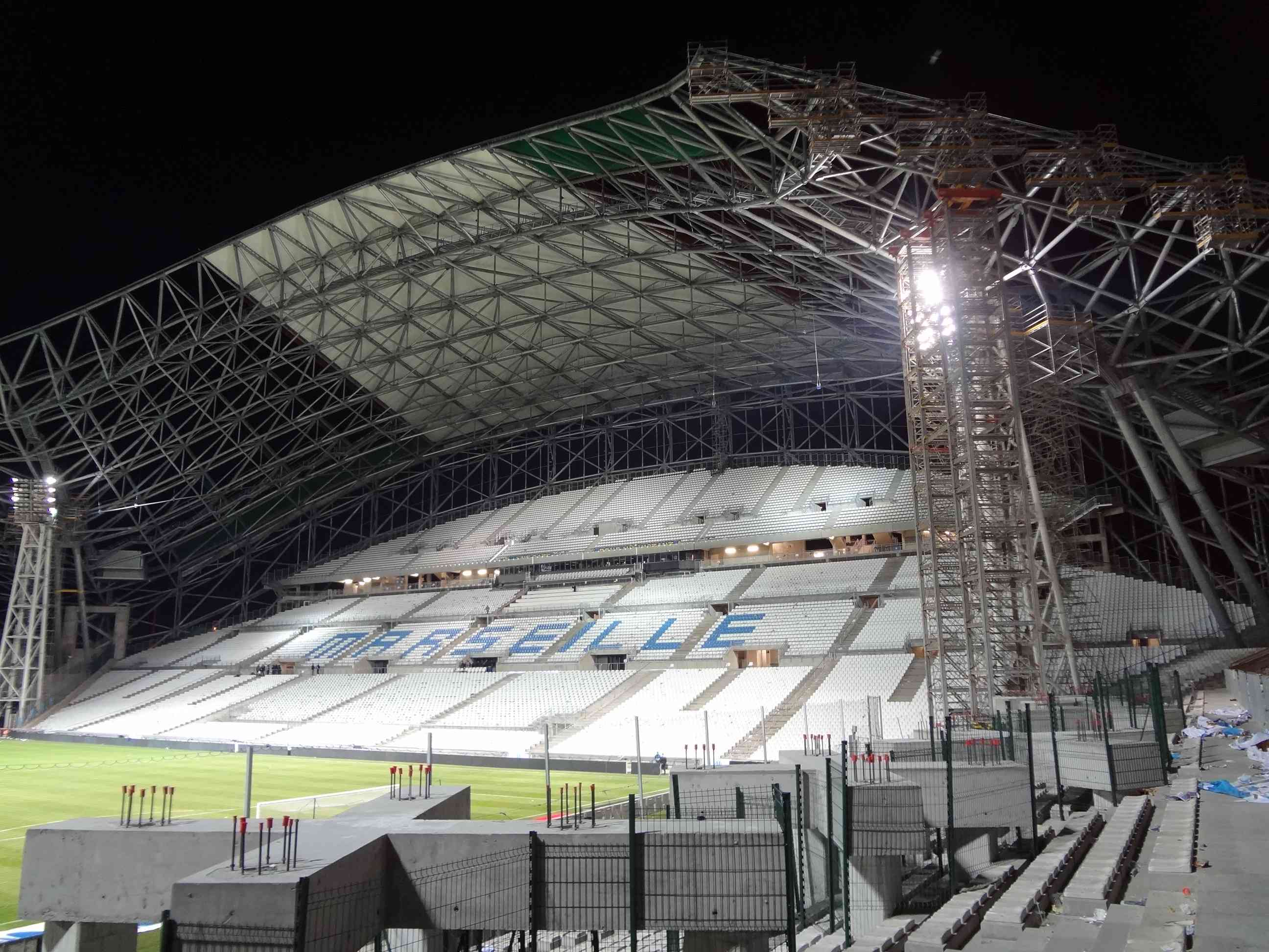 et l'idée comme quoi ce serait une toile différente utilisée pour ses propriété de diffusion et réflexion des lumière LEDs semble la plus pertinente. le toit n'est éclairé artificiellement que de l'intérieur (face mate) et la face exposée au soleil et aux intempéries est peut être traitée différemment (aspect plastique).