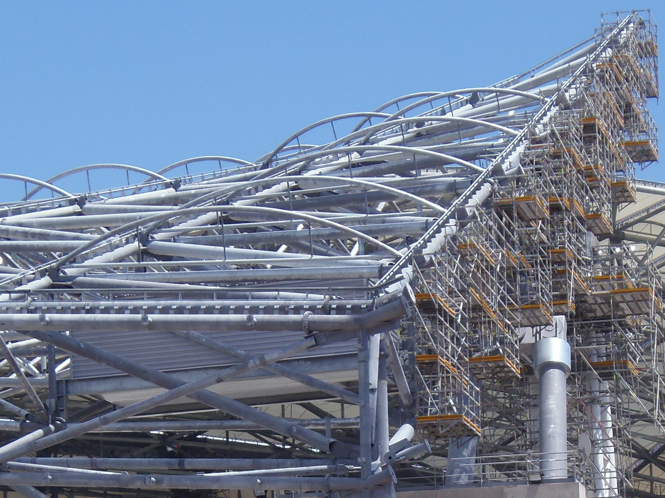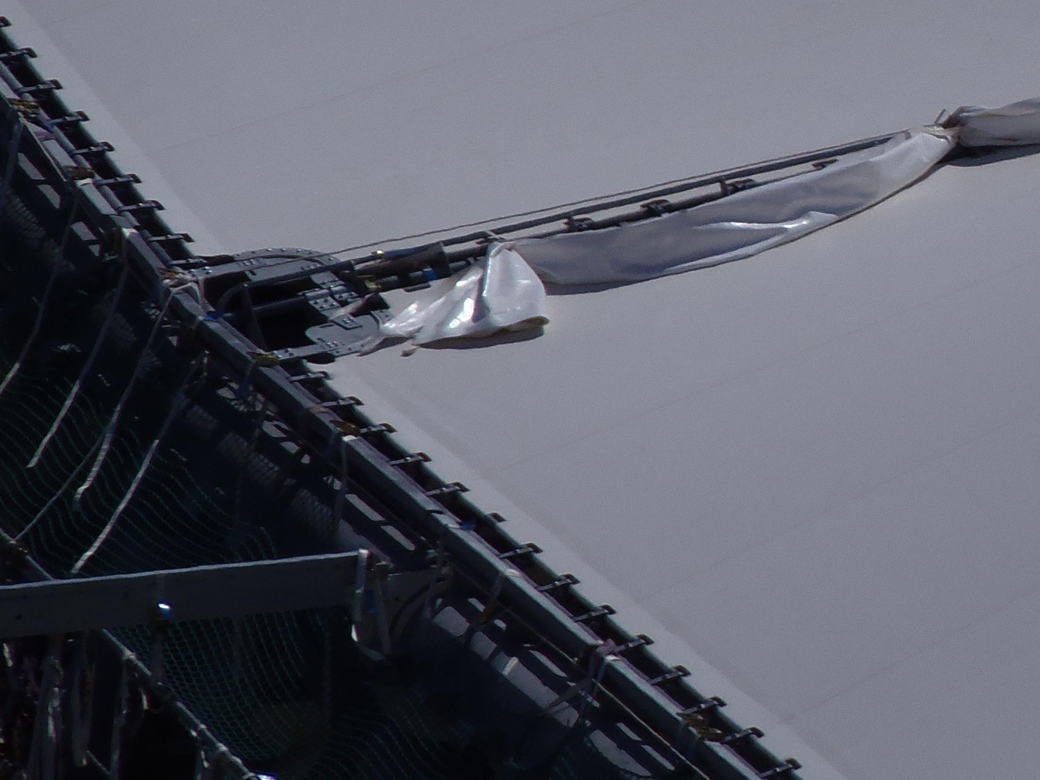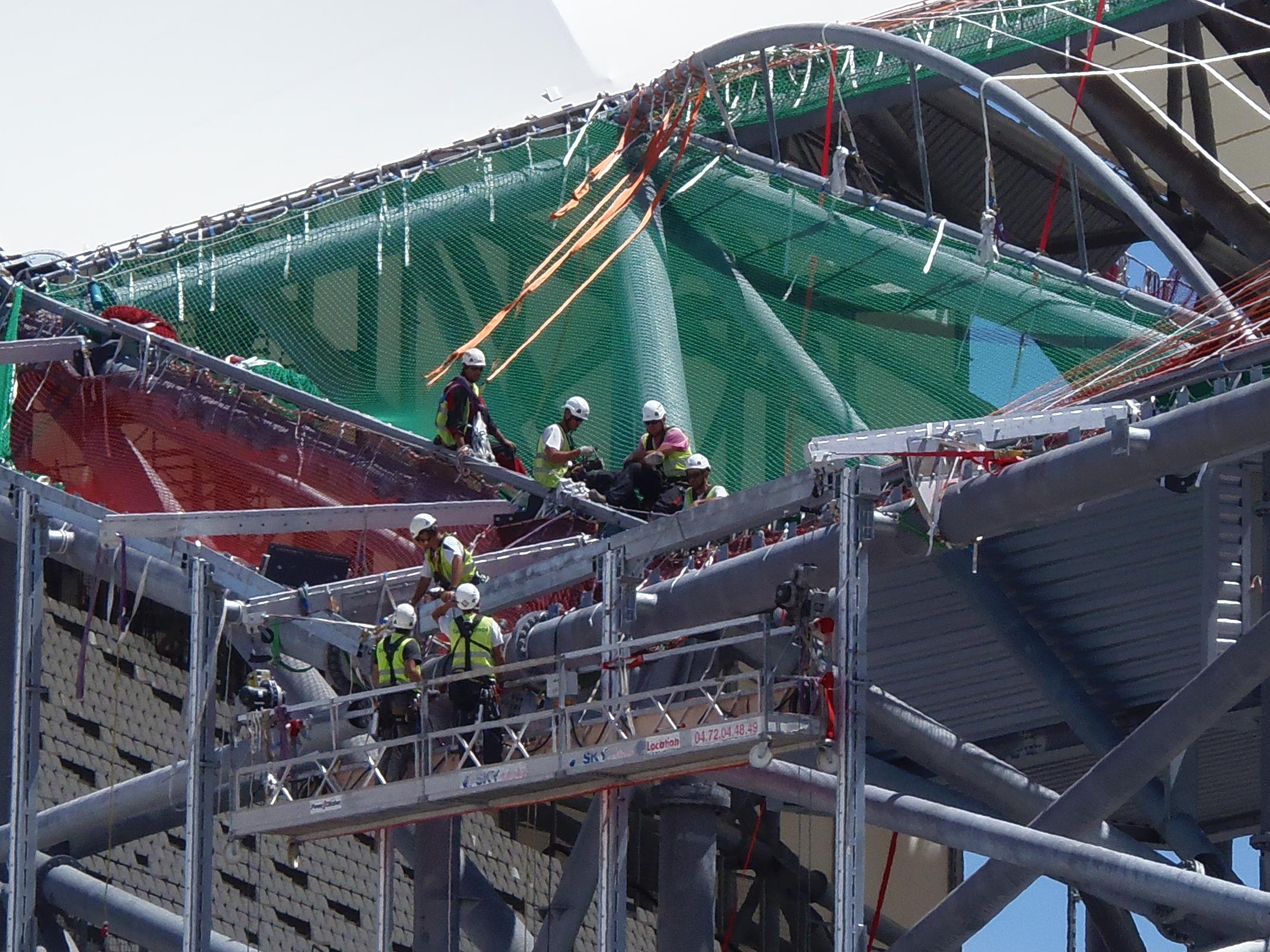 vers les 34 sec de cette derniere nous voyons les ouvriers montant en hat de Ganay par les passerelles, ces derniers sont plus haut que la toile ( environ 50 cm ) d'ou ma question, pensez vous qu'a ce niveau la toile sera " bombée " pour permettre au futur technicien de pouvoir se deplacer debout ? en effet si la toile est raccorder a la meme hauteur que les lées , il me semble que leur deplacement se fera de maniere difficile ( il devront etre vouté pour emprunter les passerelles )