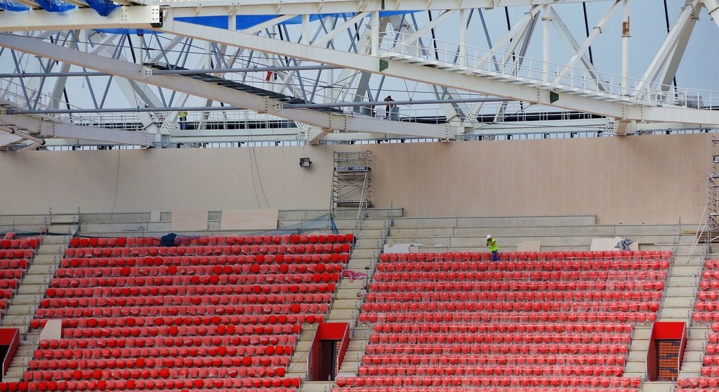 La pose des sièges a commencé il y a 2 semaines et la couverture des tribunes débutera dans 2-3 semaines.