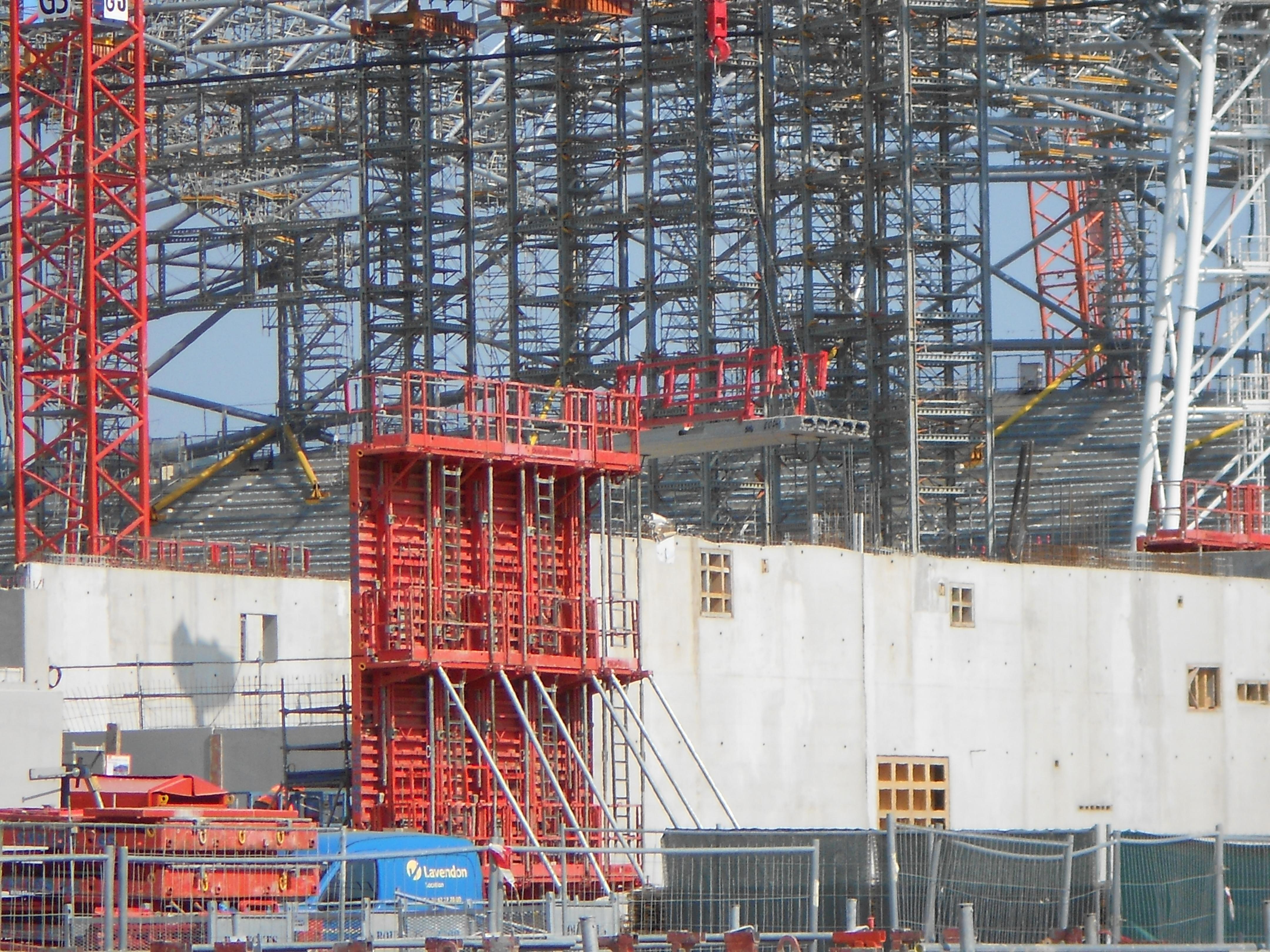 Pose du béton au pied de Ganay, pose des lés, mise en place de chéneau, début d'extraction des palées, coulage de béton au parvis sud etc ...
