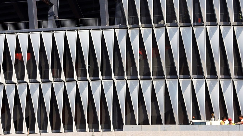 marrant ce "bardage", très original! C'est sympa comme chantier on a l'impression que le nouveau stade bouffe l'ancien... Pas trop de nostalgie chez les supporters de voir disparaître la cathédrale?