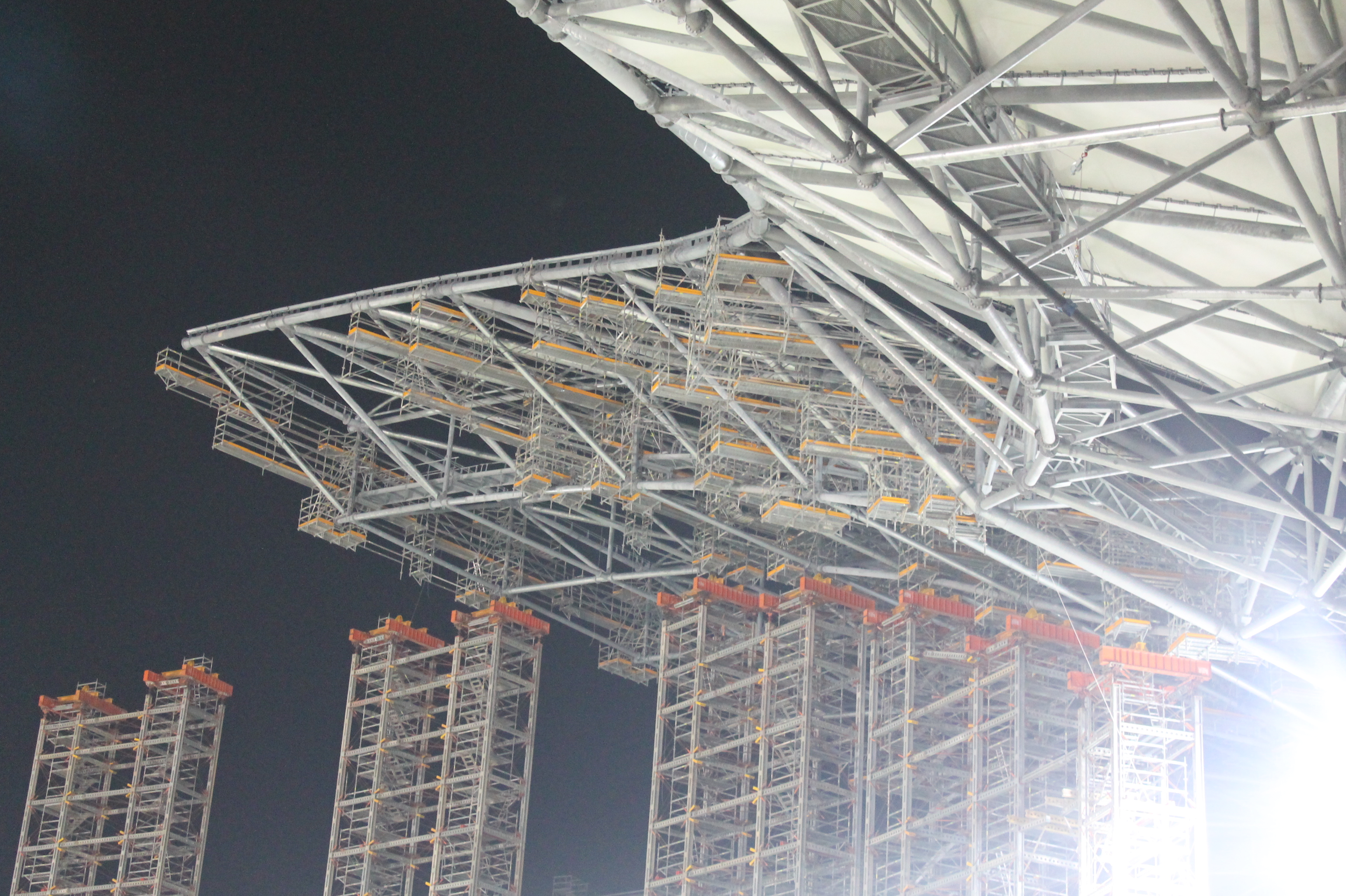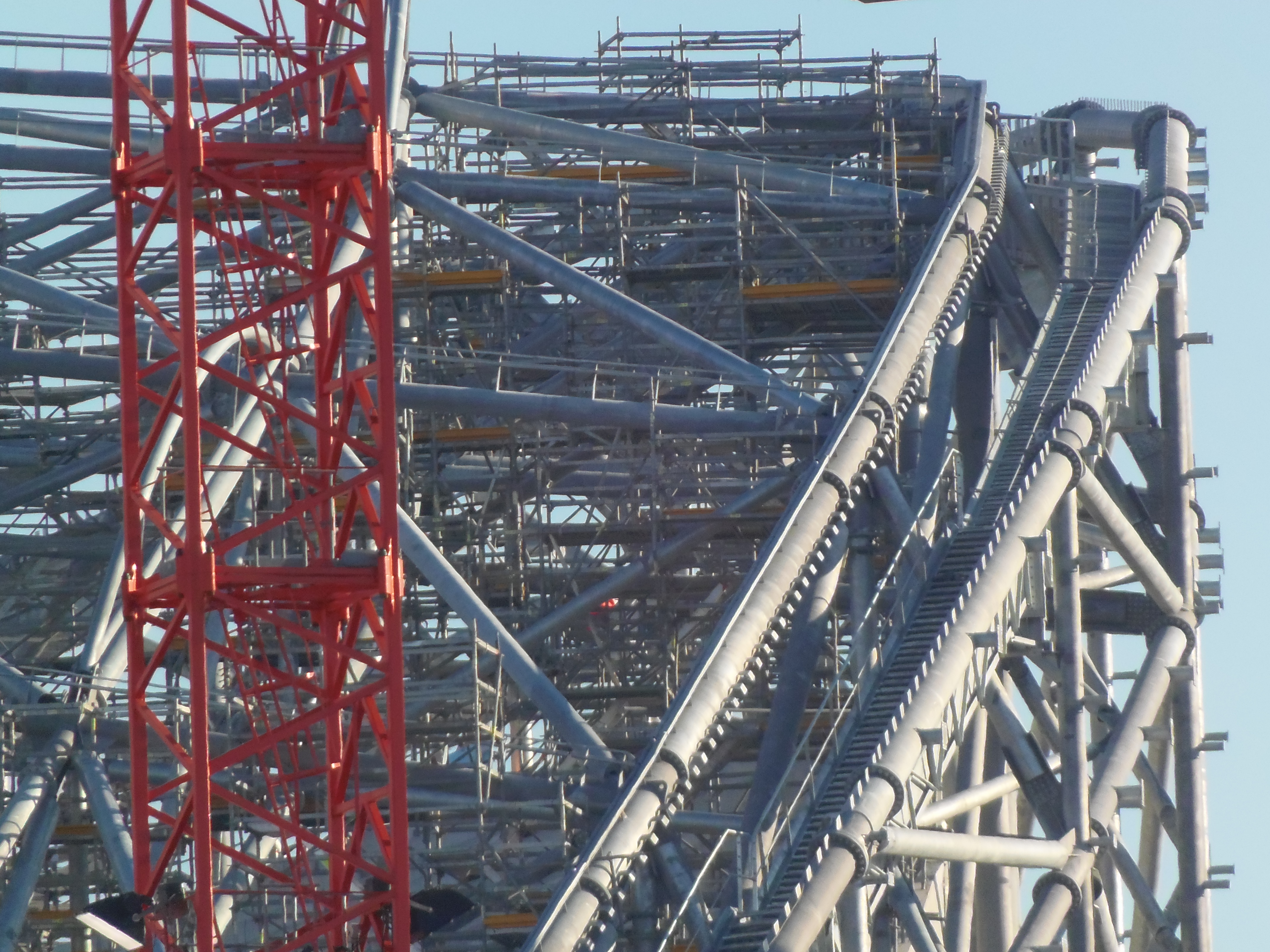 Vue sur le colis simple et radiales en cours de montage Pose d'une radiale sur le colis double (vers 19h30) Désolé JJ, je n'avais pas de point de vue vers un chaineau et ses gardes corps repliés.