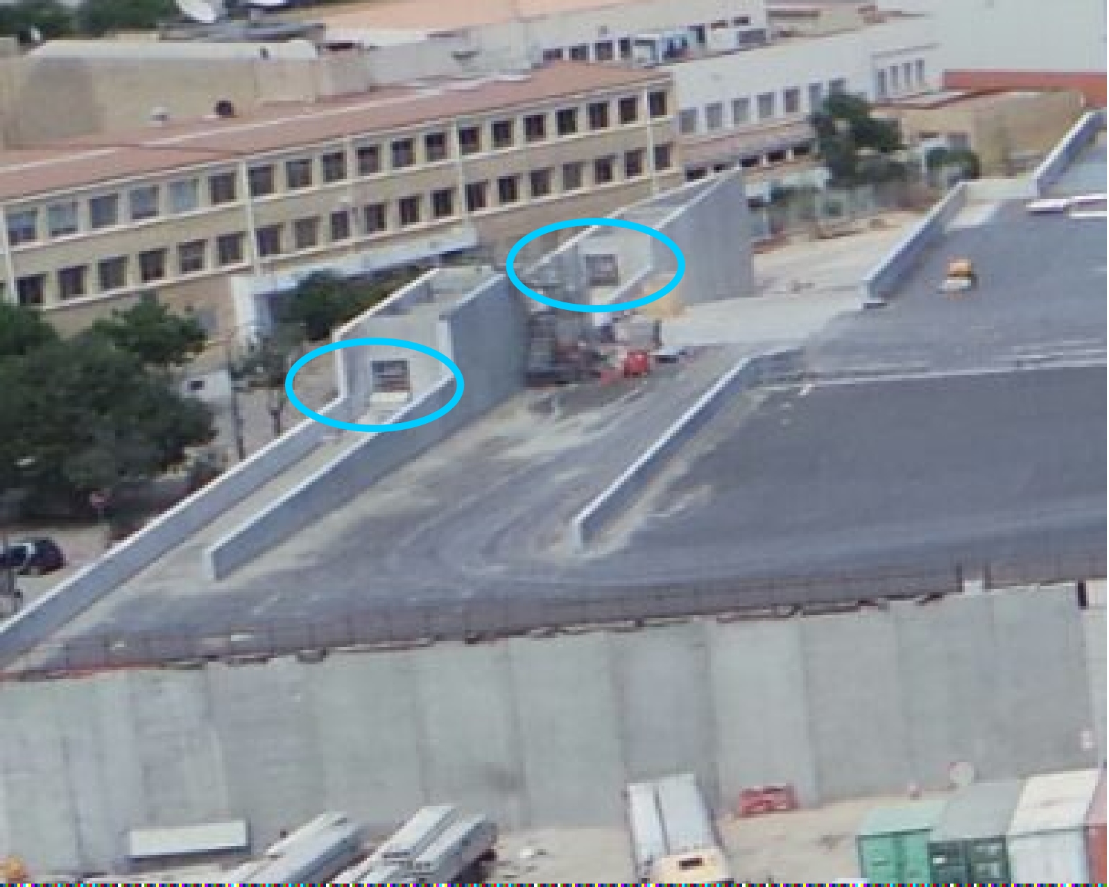 Les banches : elles étaient bien en transit entre deux zones de travail des grues sur le palier entre les deux séries d'escaliers.