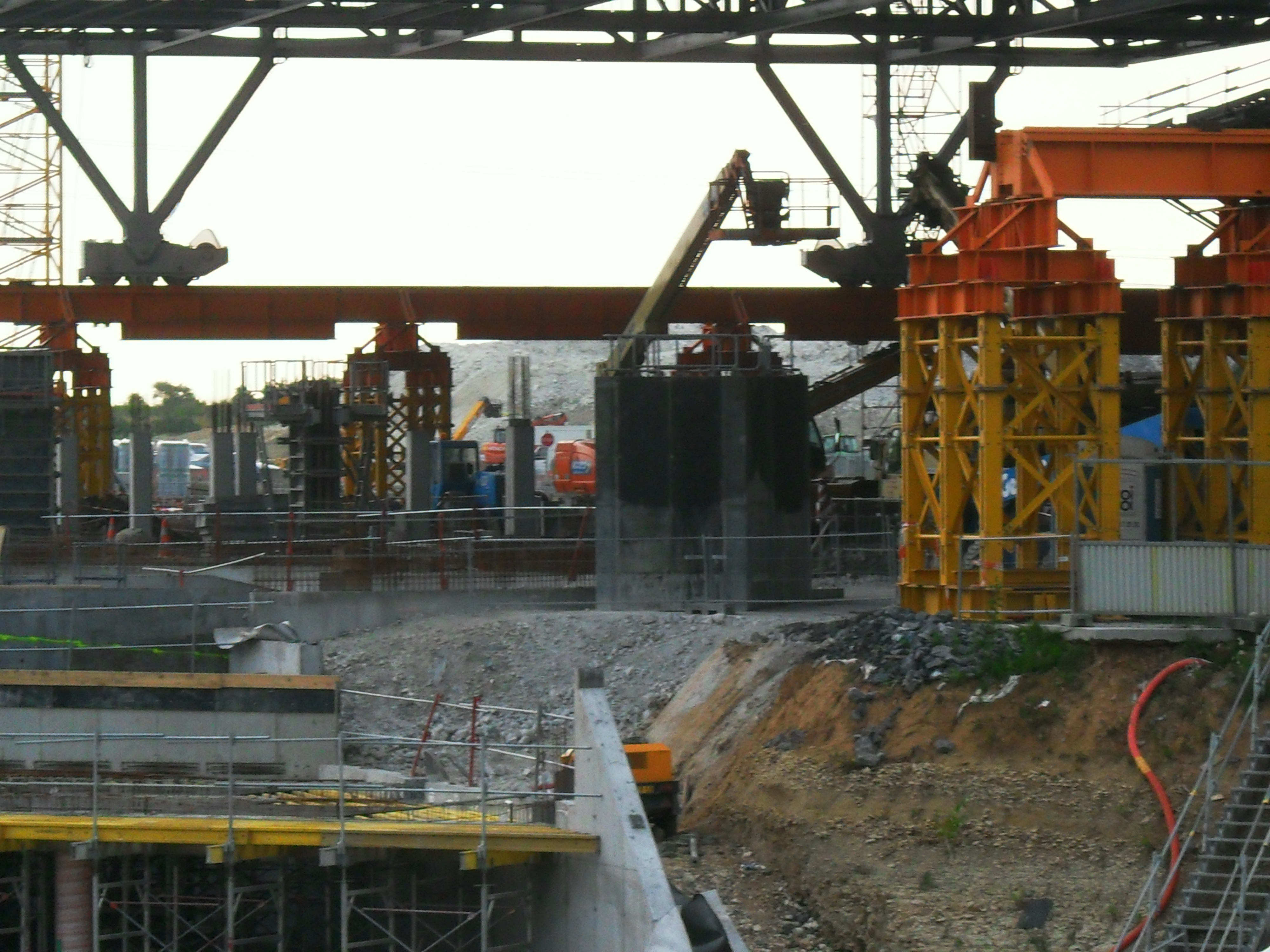 On se rend vraiment compte de l'aspect "enterré" du grand stade! Le parvis sera quelques mètres au-dessus du niveau du terrain!Van Basten a écrit : mise en place des piliers pour le futur parvis :