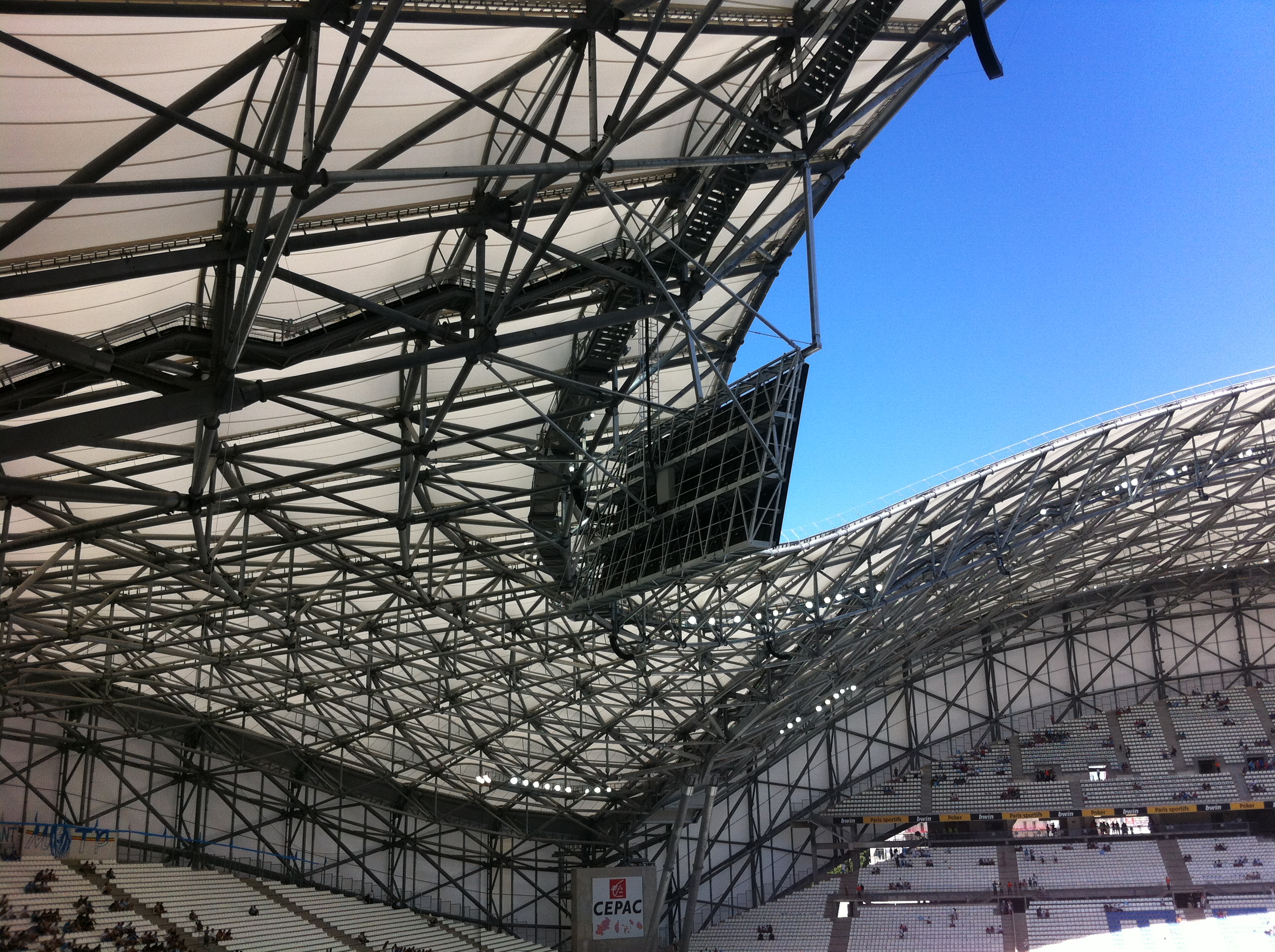 pour le reste je suis toujours fan du stade dans son ensemble, du volume, de l'impression de gigantisme (à ce sujet, prévoir de monter l'équivalent de 5 étages environ pour arriver jusqu'à cette travée, j'ai vu des gens pas jeunes arriver pas frais....)