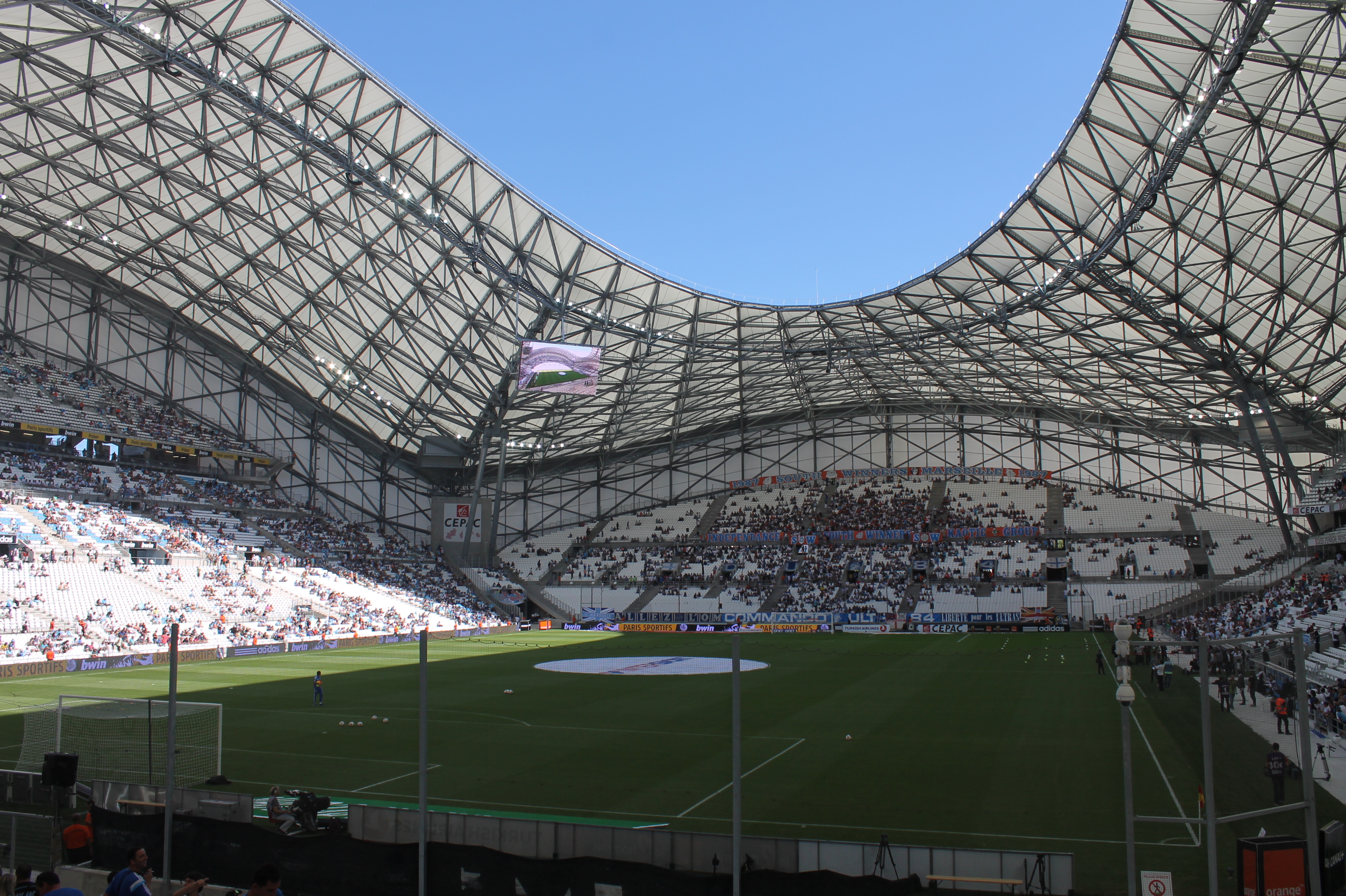 pour le reste : je confirme ce qui a été dit plus tôt, la tribune JB était franchement sale, les sièges pourris ; ensuite les tourniquets ne fonctionnaient pas pour les abonnés, il a fallu attendre un moment qu'un mec vienne et prenne la décision de nous faire entrer ; ça je pense que c'est typiquement le genre d'emmerdements qu'on peut rencontrer à l'ouverture, rien de dramatique si c'est réglé la prochaine fois.