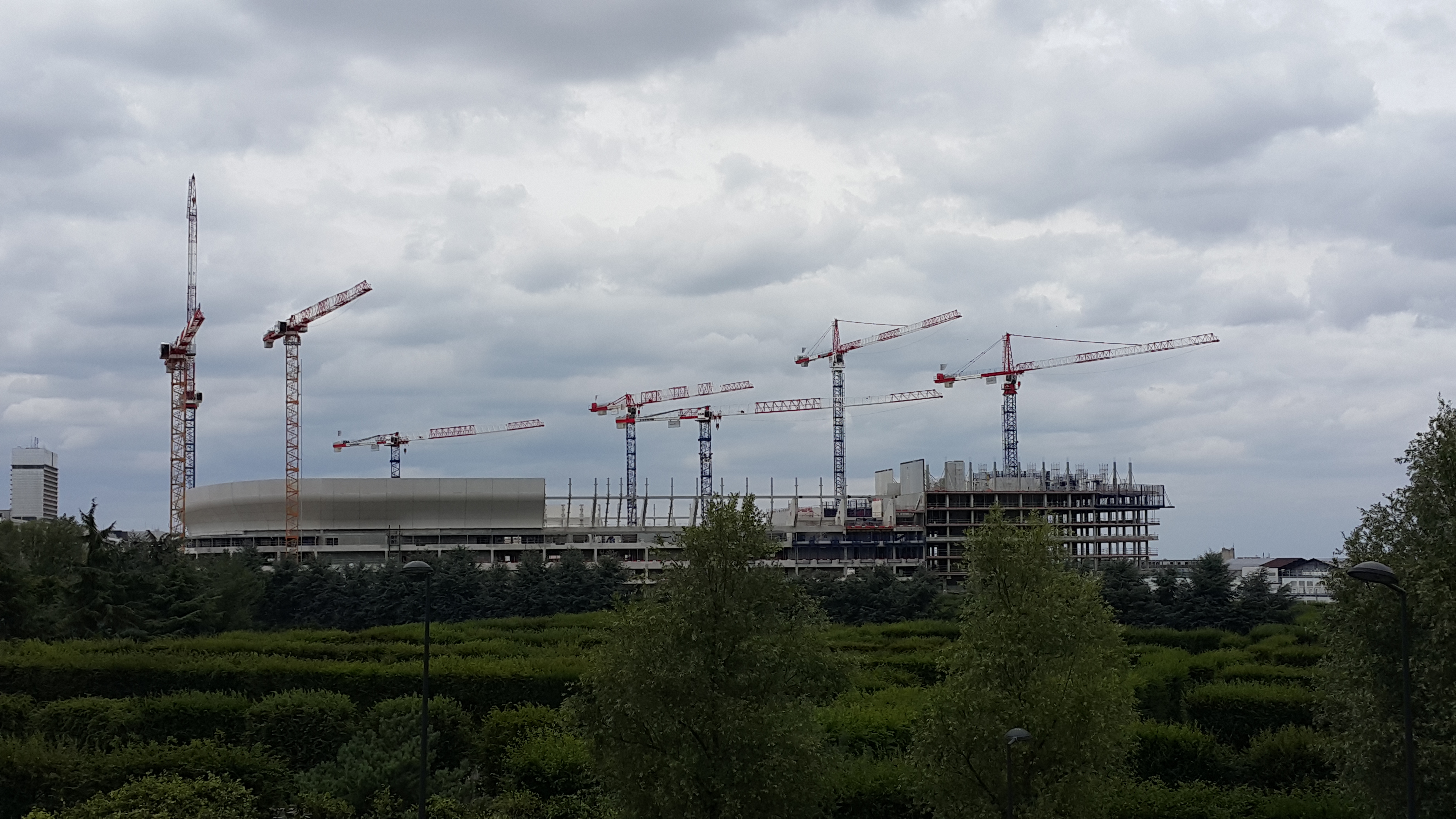 J'ai vu quelques plans camera TV lorsque France 2 a diffusé le défilé du 14 Juillet. Si vous avez la chance de trouver un Replay de l'émission, et de faire une capture d'écran, on y aperçoit très bien le stade en construction, puisqu'ils sont passé au dessus.