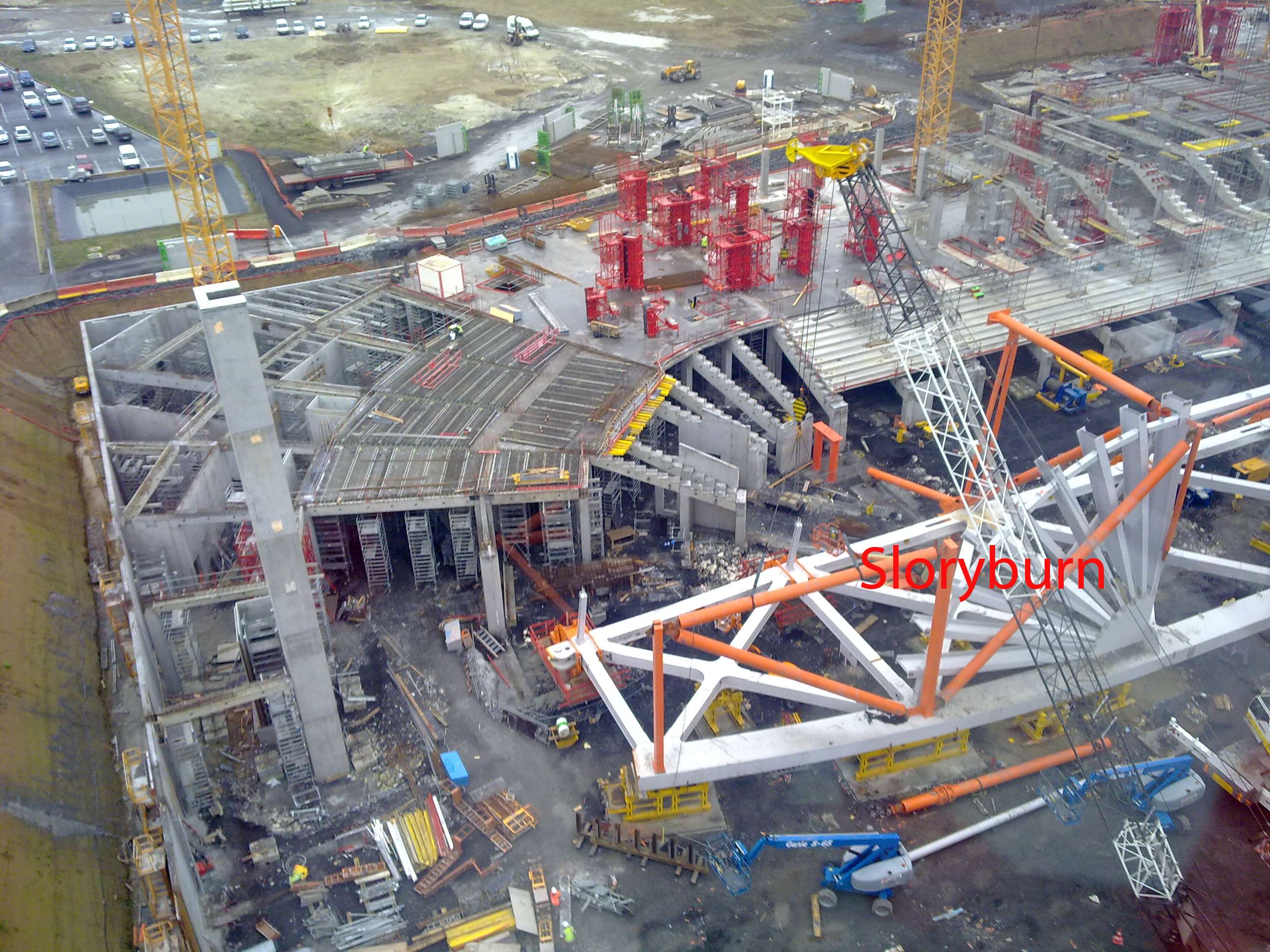 Ils ont coulé la dalle sur l'entrée de la boite à spectacle ?!? Ils vont donc pouvoir continuer les tribunes au dessus !