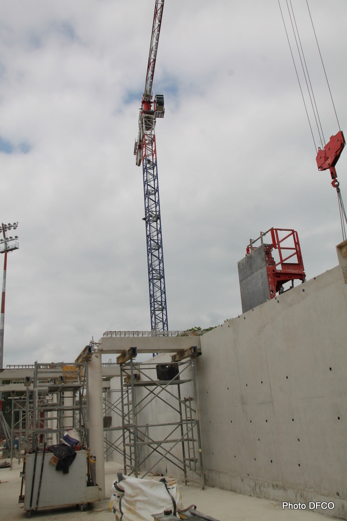 Lorsque le DFCO était en Ligue 1 la capacité du stade était plus importante (16098) il fallait donc plus de 600 places pour les visiteurs (tribune visiteurs actuellement) pour respecter le quota Ligue 1. La tribune visiteur était donc plus importante comme tu peux le voir sur la photo. Lorsque Dijon est redescendu en L2 la mairie n'a pas voulu (ni le DFCO) refaire une commande de sièges.