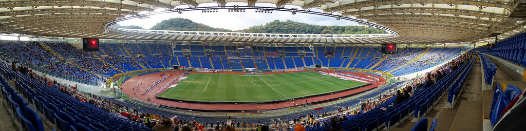 Dans les coursives, avant de rentrer en tribune, des affiches célébrant l’unité italienne sont distribuées aux spectateurs, « pour la chorégraphie d’avant le coup-d’envoi ». Chouette, le rendu peut être sympa. La vérité, c’est que les virages sont à moitié vides, et que presque tout le monde se sert du bout de carton pour s’asseoir dessus. Les sièges de la Curva Nord de l’Olimpico ne sont pas très propres, surtout pour ce père de famille, qui explique avec pédagogie la chose à son fils d’à peine 10 ans : « C’est important de se protéger de la crasse de ces sièges, d’habitude dans ce virage, il y a les supporters de la Lazio, et ils sont dégoûtants ». Leçon retenue par le fiston.