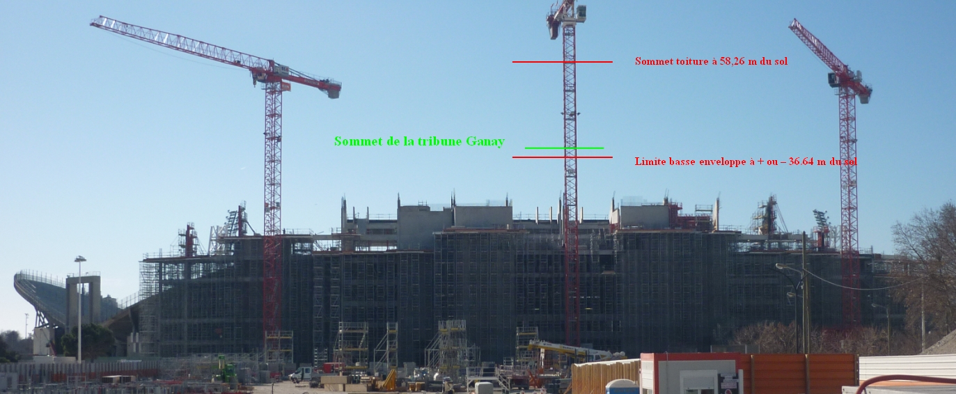 D'après mes calculs, il reste 11,16 mètres à monter pour arriver au sommet de la tribune (représenté par la zone verte)