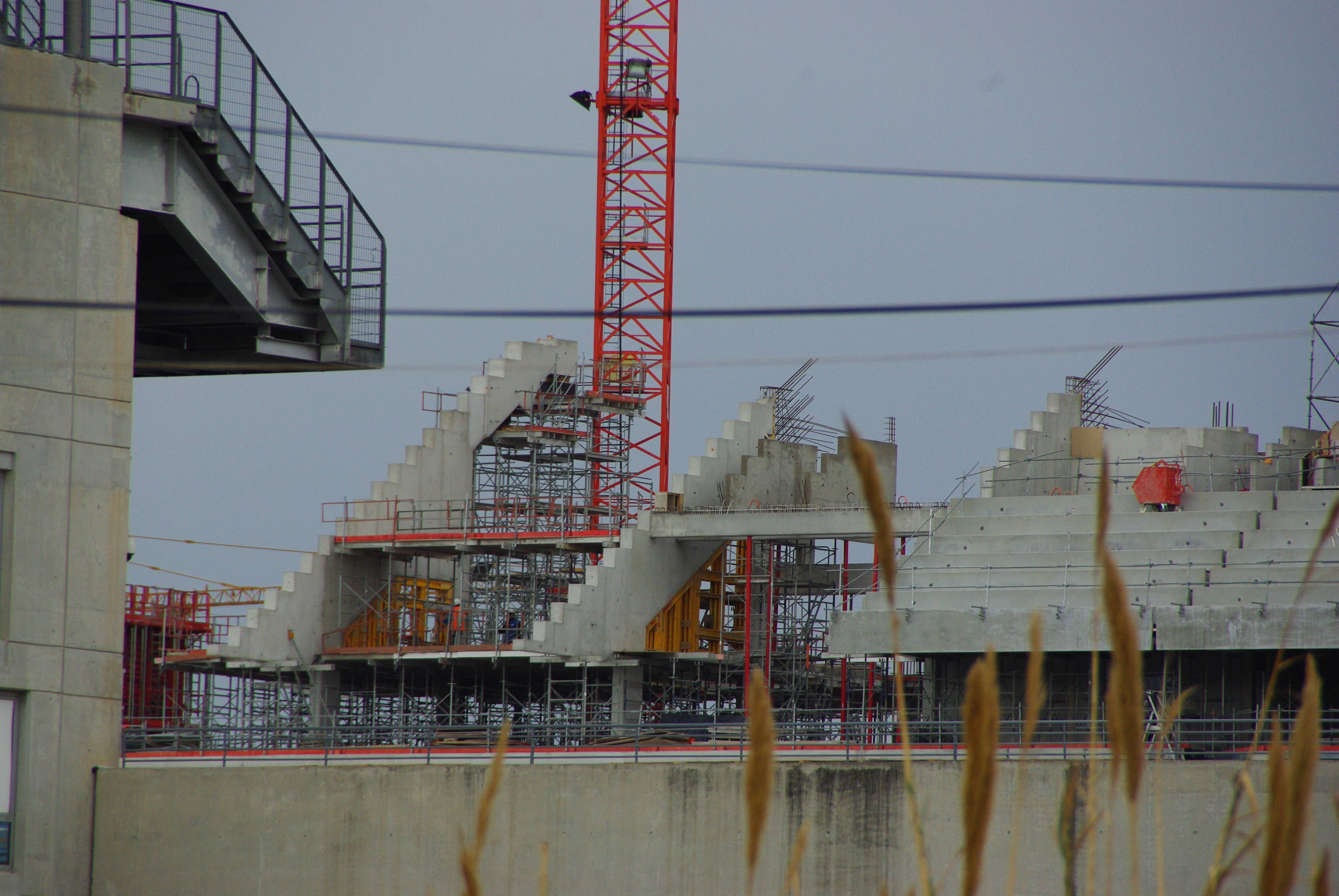 Quand j'avais mis mon message, je pensais que la poutre qu'ils viennent de poser pourrait servir justement a poser les gradins d'un coté et de l'autre coté sur la cremaillère qui est plus haute... mais au final j ai des doutes^^