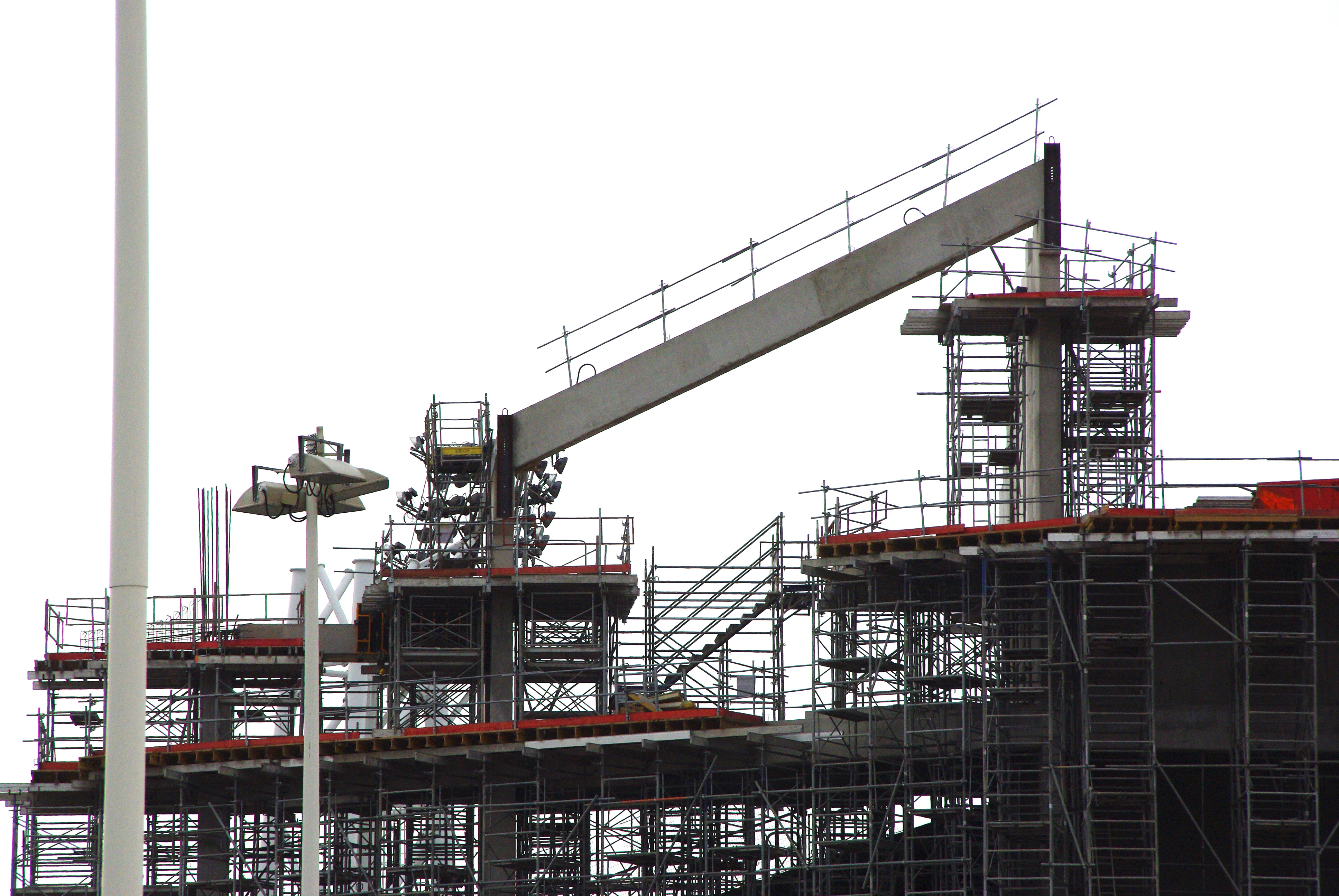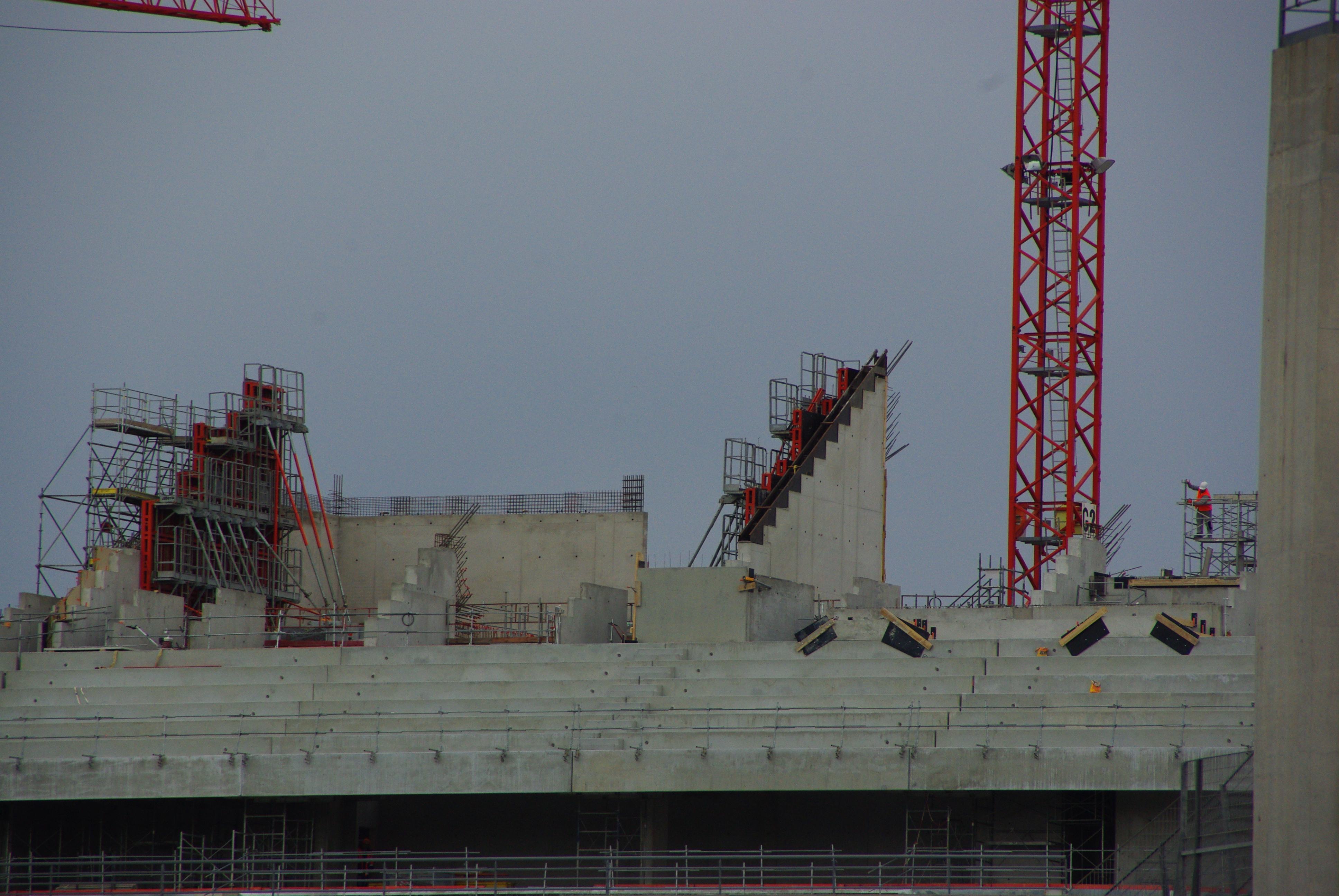 Et bien écoutes ces traverses posées en haute de la tribune nous montrent qu'il y a un cran (le bord n'est pas lisse sur l'intérieur) et mon intuition est qu'un bloc d'unseul tenant composé de plusieurs rangées de gradins va venir s'appuyer dessus :)