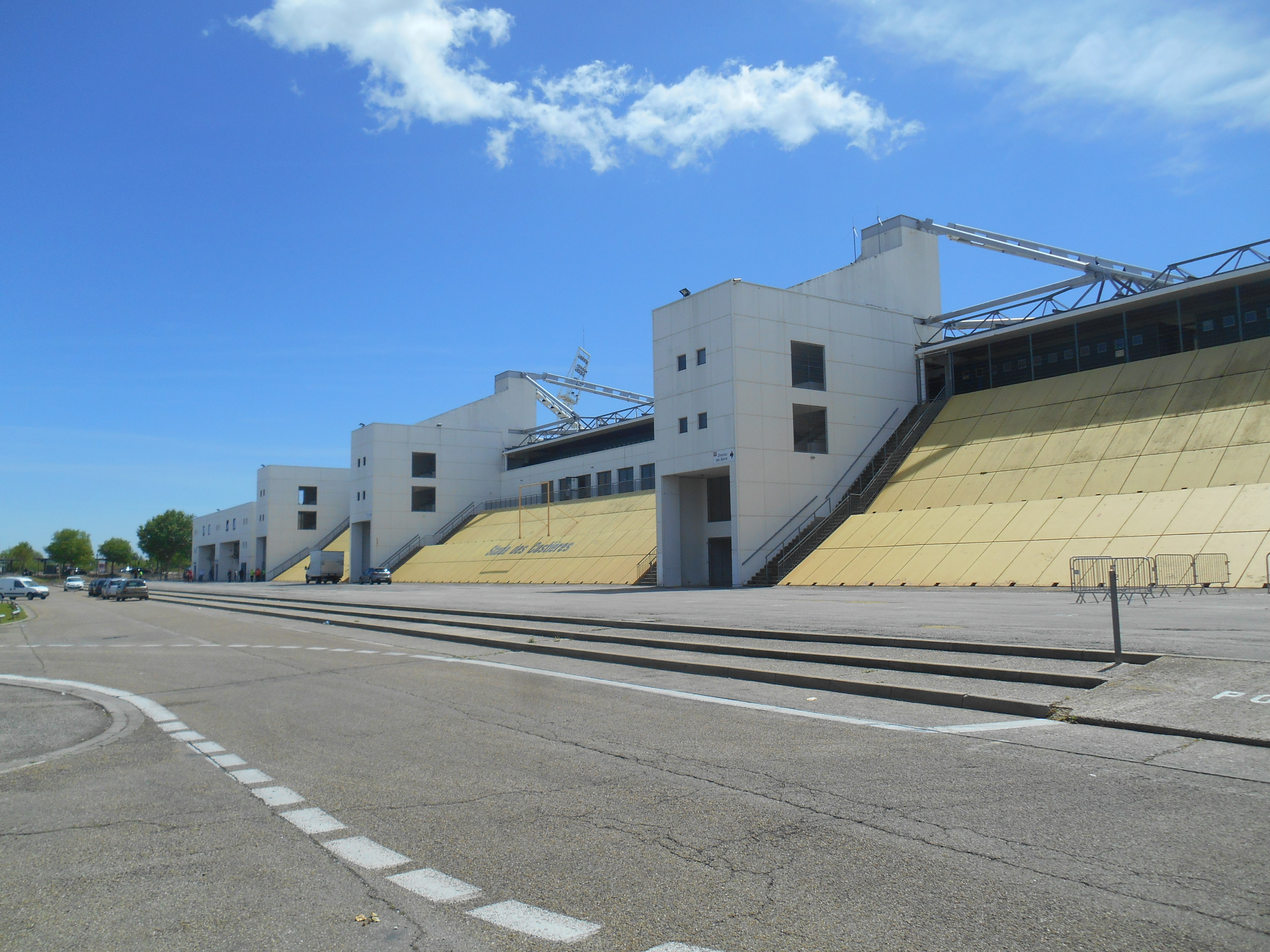 Suite et fin ! Résumé, beau stade, mais qui mérite un bon ravalement des angles bétonnés ! Après dommage d'avoir les tribune derrière les buts non couverts, après çà fait le charme de ce stade ! J'aime son architecture aux angles bétonnés !