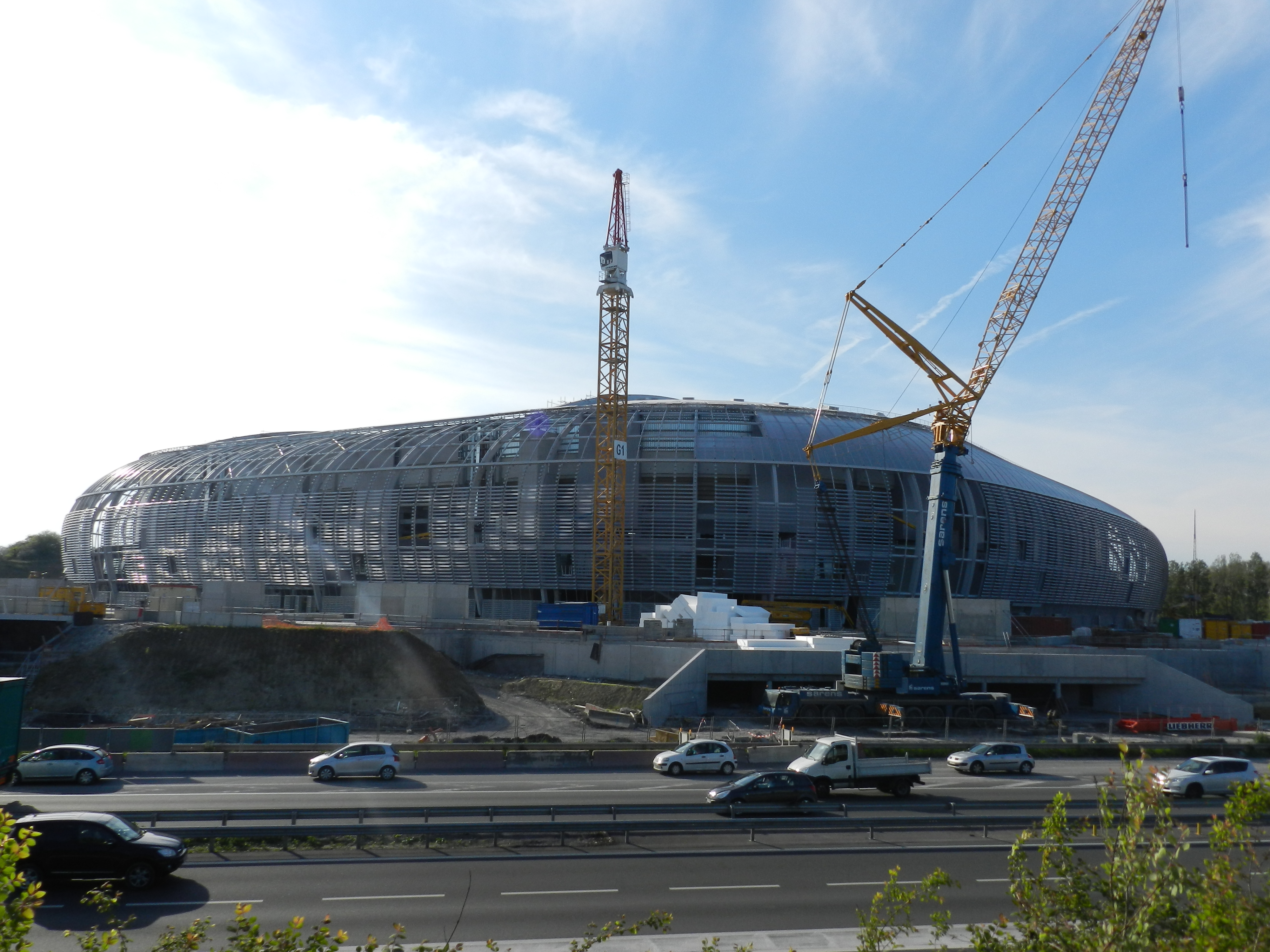 Le Grand Stade Lille Métropole, dessiné par l’agence parisienne Valode & Pistre, sort de terre. A la fois stade et salle de spectacle à géométrie variable, l’équipement sera livré en 2012, une année riche en événements sportifs avec la coupe d’Europe de football en Pologne et en Ukraine, les Jeux Olympiques d’été à Londres ou encore la Quinzaine de l’Entorse à Lille, un programme culturel visant à provoquer la rencontre entre le monde de l’art et celui du sport. C’est dans ce cadre que la Maison de l’architecture et de la ville du Nord-Pas de Calais propose l’exposition « Le stade, miroir de la ville » : il s’agit de bâtiments ultra performants, capables d’accueillir différentes pratiques de sports, des spectacles, des concerts et autres grands rassemblements collectifs.