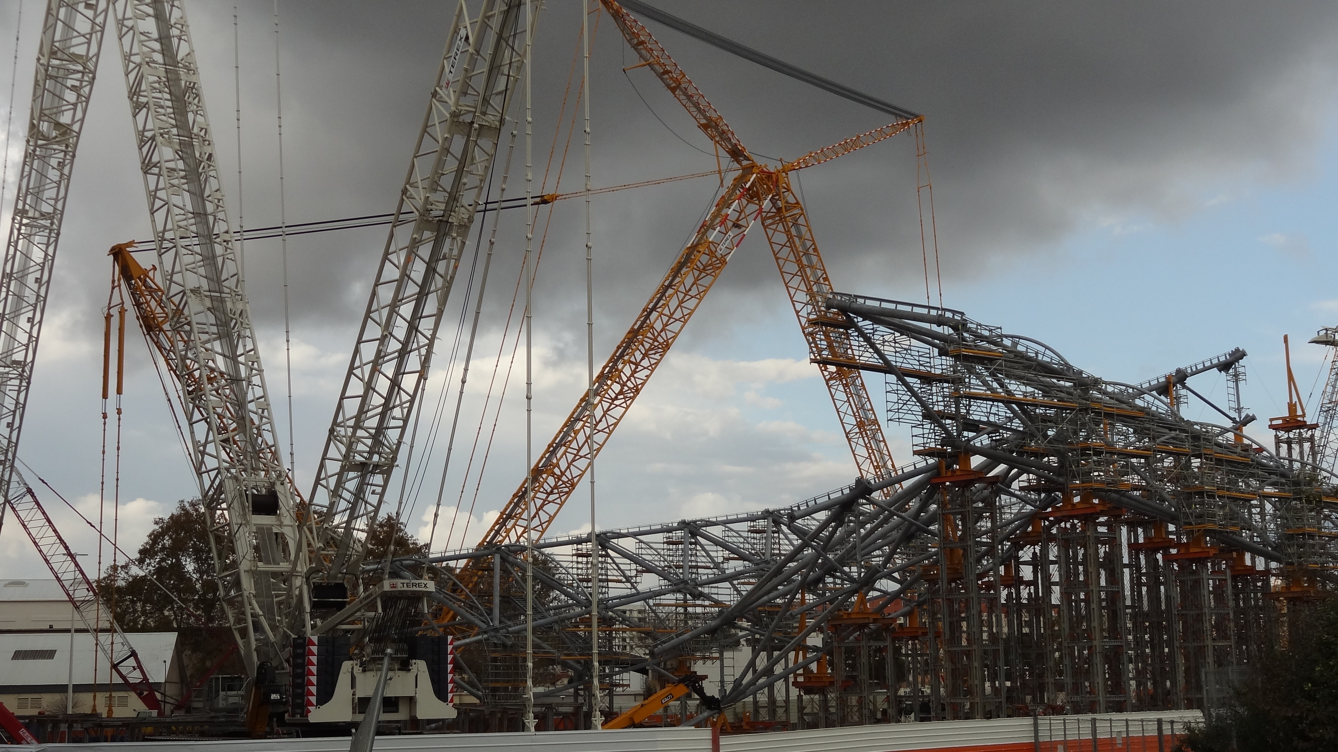 Il reste encore la pose de la charpente à être posé aux 4 tribunes tout en sachant qu'il faut monter la jupe aux 2 virages plus détruire et refaire jean bouin plus tous les détails qui vont avec et la suite des parvis et beaucoup de travail reste à faire en tenant compte que l'on va entrer très vite en journée réduite avec l'hiver et ses caprices non ça devient très compliqué tous ce retard d'accumulé il faut en être réaliste.