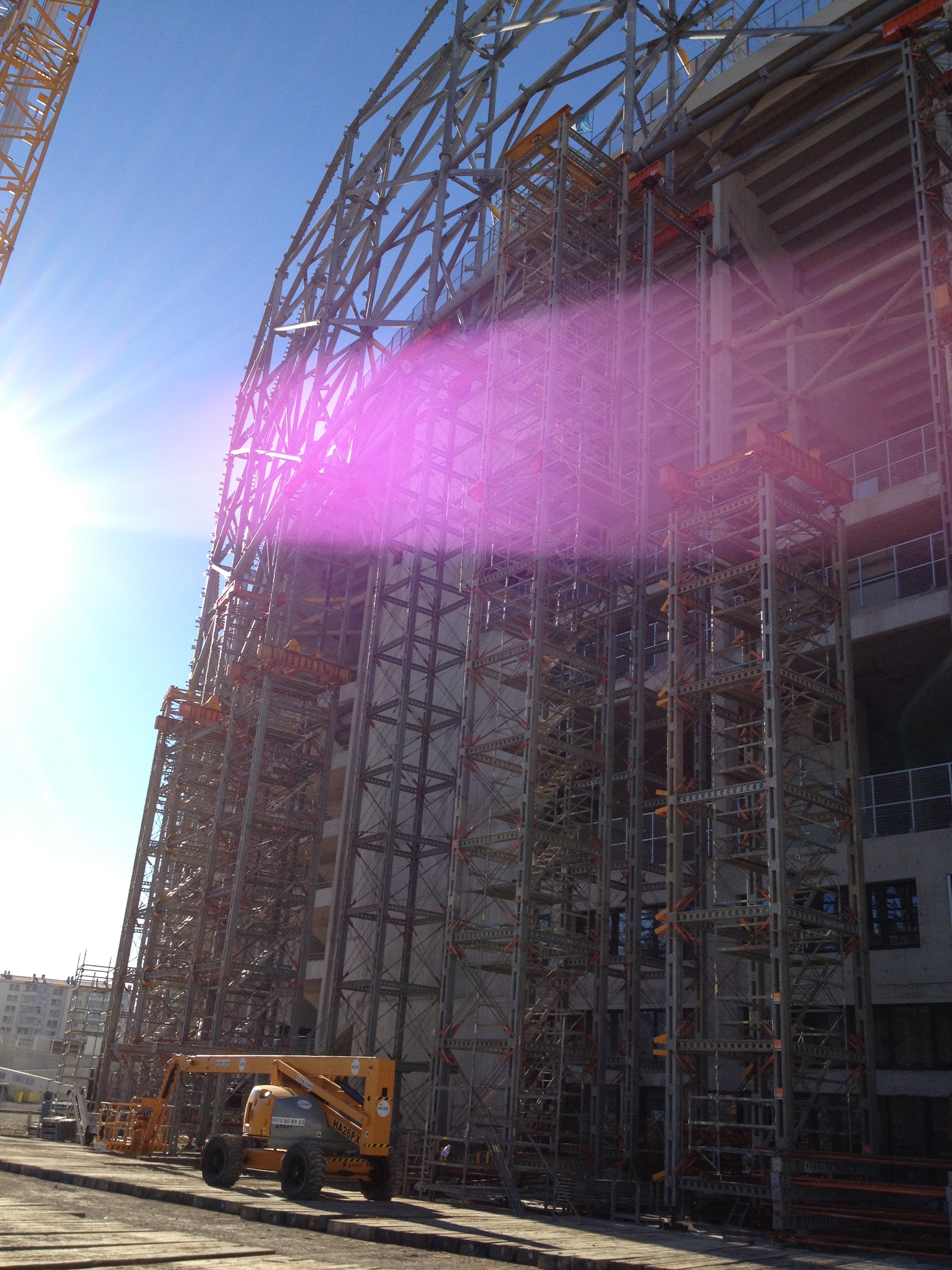 Réponse : Parce qu’ils veulent commencer à monter des colis de la charpente du VN pendant les derniers matchs de la saison. Le but étant d’avoir fini la charpente des deux virages terminée avant la reprise de la saison 2013-2014.