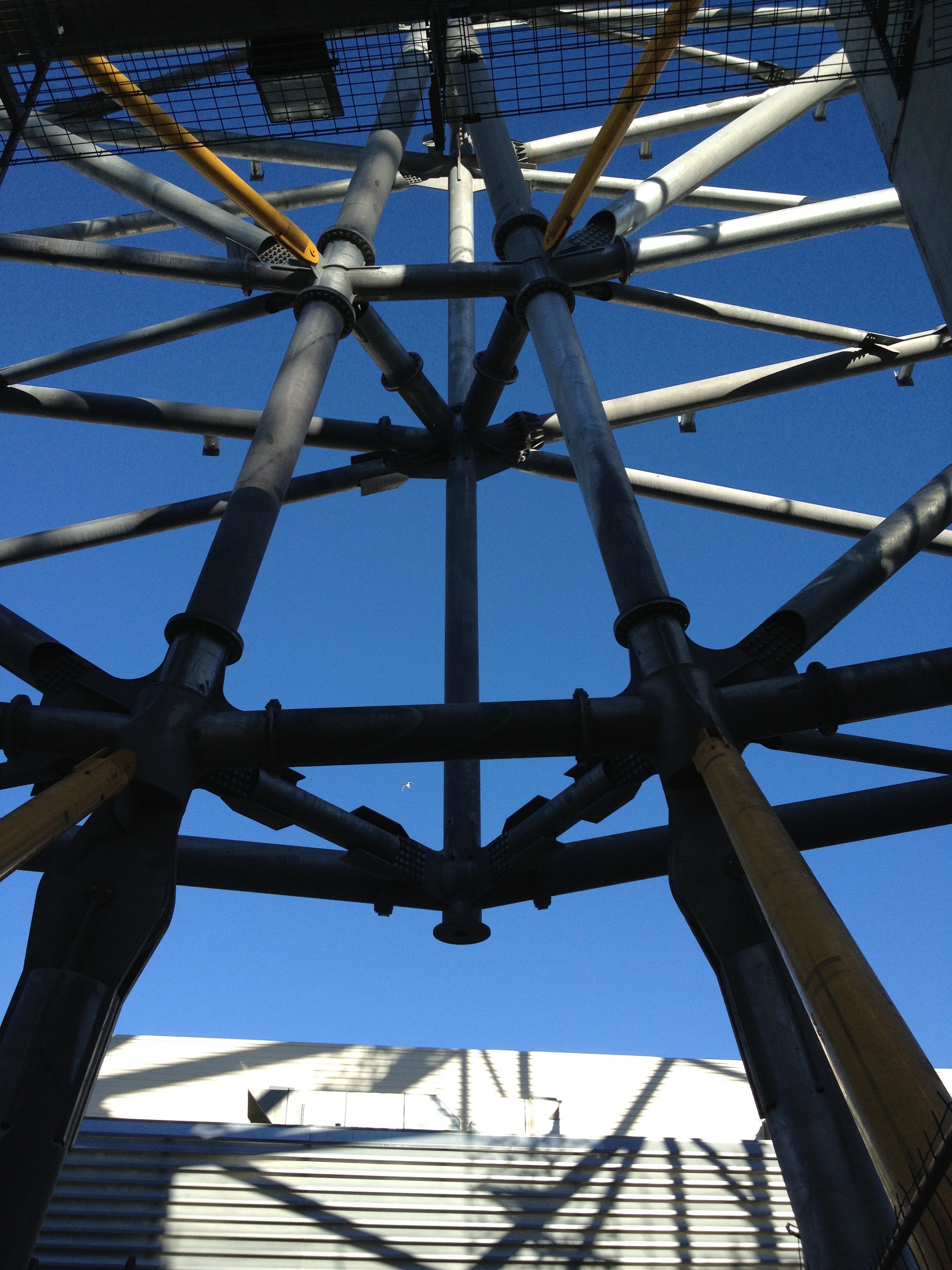 Réponse : AREMA nous a certifié qu’il n’a jamais été prévu que la charpente soit blanche. Depuis le début elle doit être galvanisée et ce avec la meilleure des qualités (niveau 5). On nous a également fait remarquer que la galvanisation est bien plus onéreuse que la peinture (et donc que parler de stade au rabais était un peu déplacé…). Pour info, les palées d’éclairage ont été peintes en blanc pour mieux s’intégrer dans le stade mais en fait elles auraient dû être jaunes comme les bracons. Quant au témoin de charpente (qui est en fait un module de test pour la pose de la toile PTFE surtout) a été peint lui aussi en blanc de manière non préméditée simplement pour protéger les éléments métalliques.