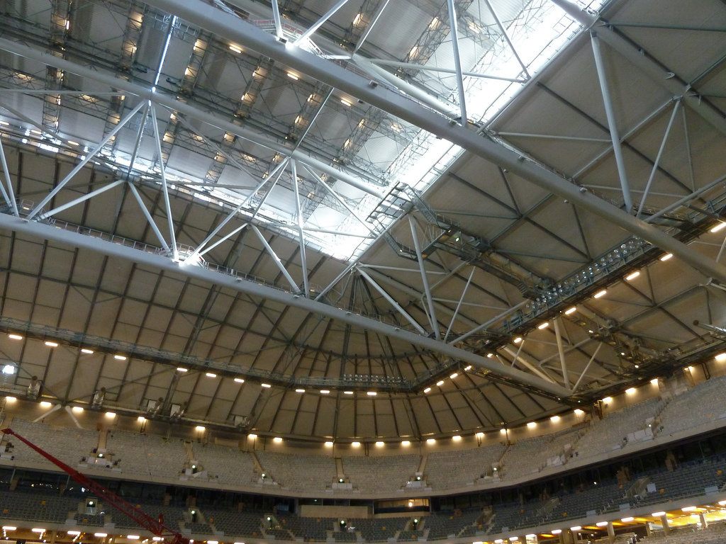 par contre il y a un petit reproche qu'on peut lui faire c'est son toit, je trouve plus beau le toit de Lille que celui - là je trouve qu'il a trop de poutre sa fait pas joli on ne voit pas assez l'ouverture un peu comme celui de Shalke.