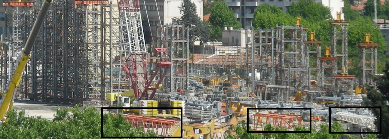et un élément blanc qui pourraient bien être des morceaux de la flèche de la grue 750 tonnes. Si c'est la cas, c'est une bonne nouvelle, la 750 tonnes arrive et elle sera très prochainement opérationnelle