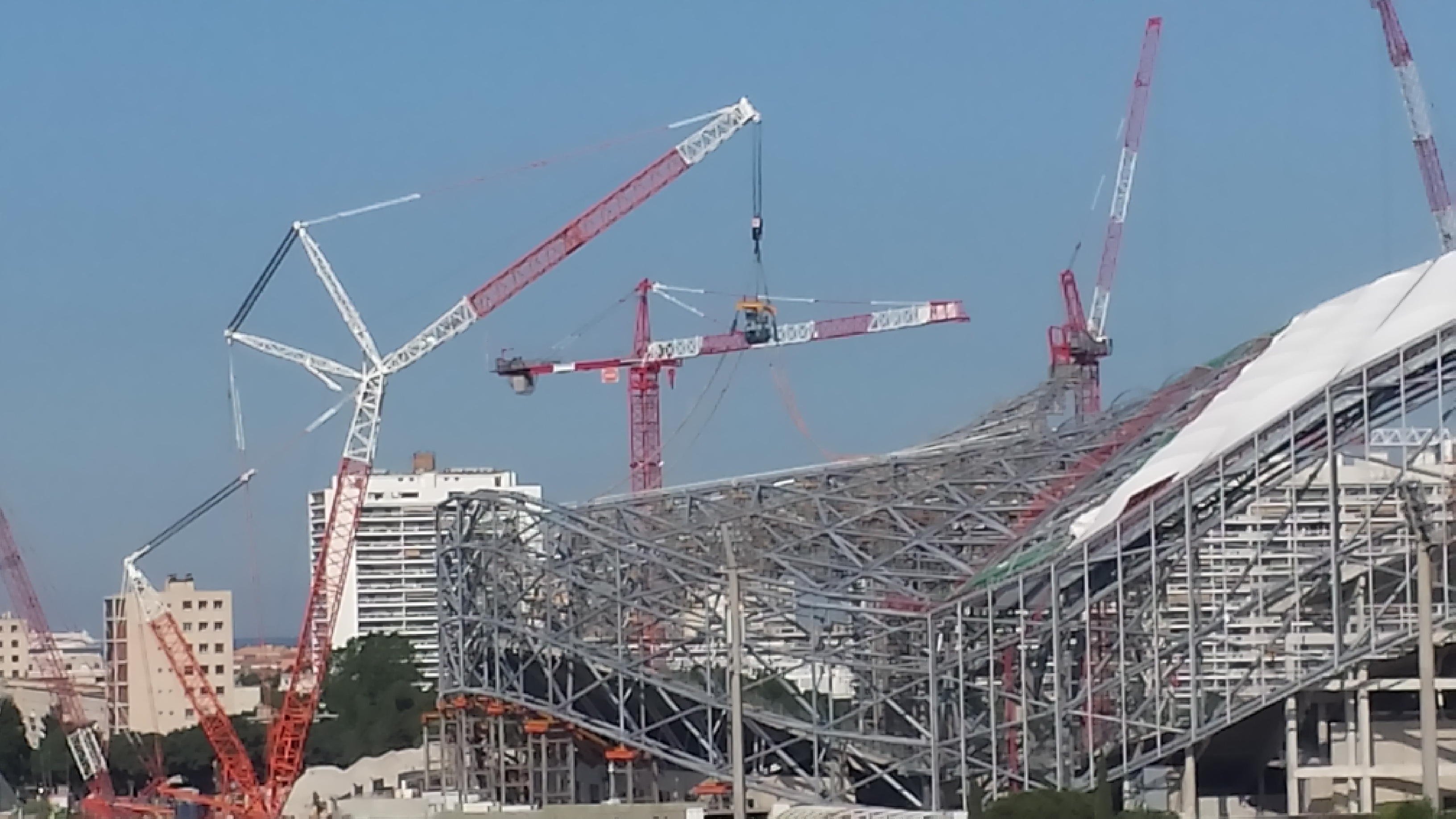 EDIT: je ne m'avance pas trop, mais il me semble vu la position de la grue mobile à l'intérieur du stade côté VN, qu'ils commencent la dépose des socles de palées internes