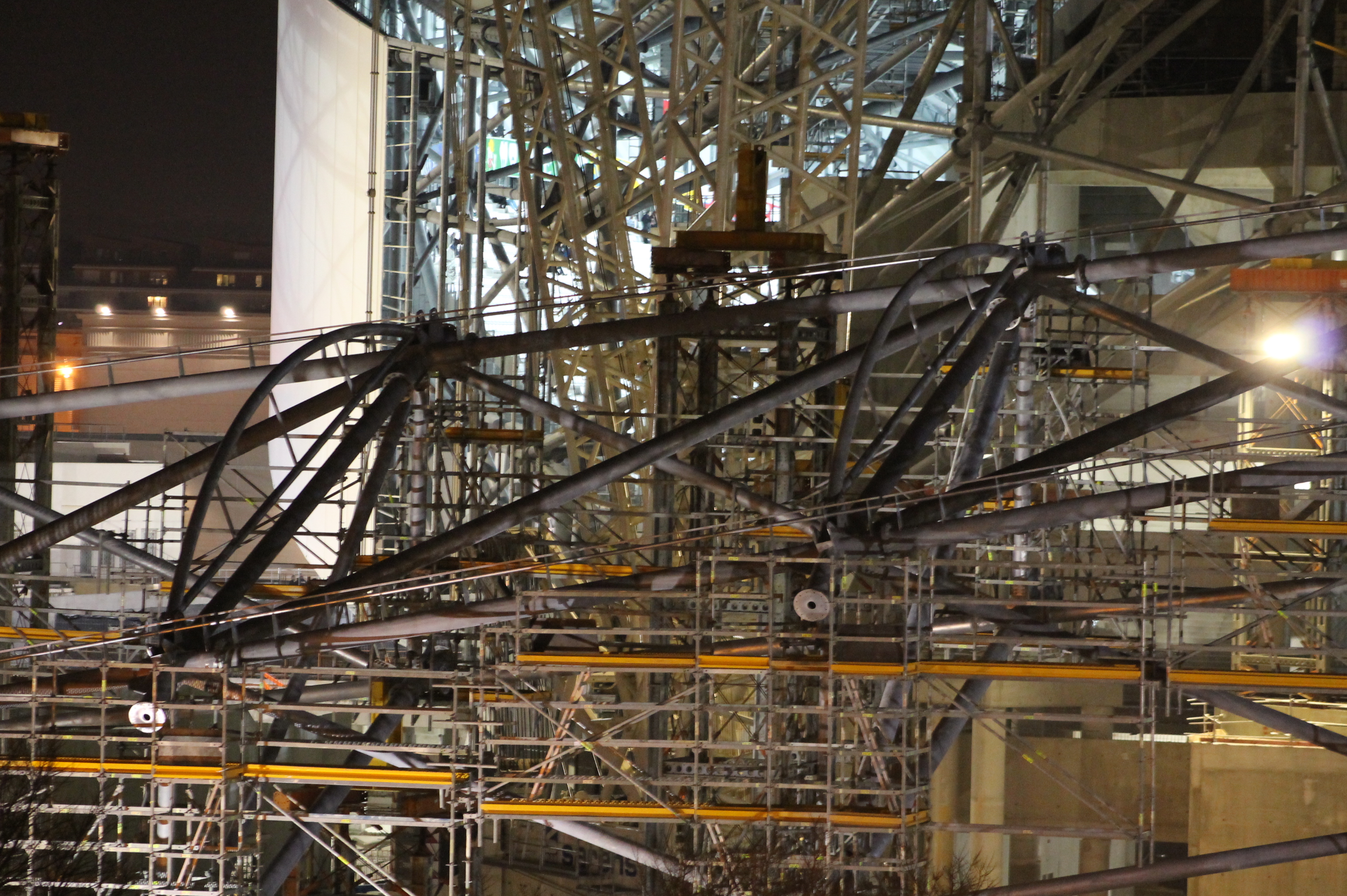 Vue sur le colis simple et radiales en cours de montage Pose d'une radiale sur le colis double (vers 19h30) Désolé JJ, je n'avais pas de point de vue vers un chaineau et ses gardes corps repliés.