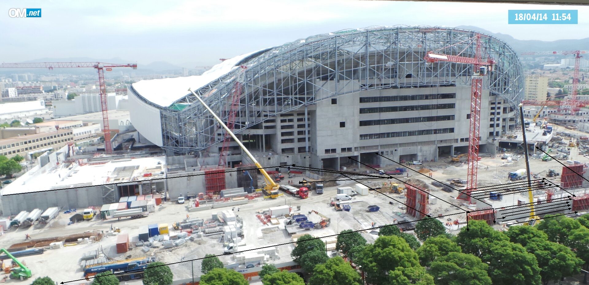 Le centre commercial, les immeubles et les 2 guichets vont sacrément le restreindre. Voir schéma où la zone verte matérialise approximativement d'où on pourra apercevoir la moitié haute du Vélodrome.![]()