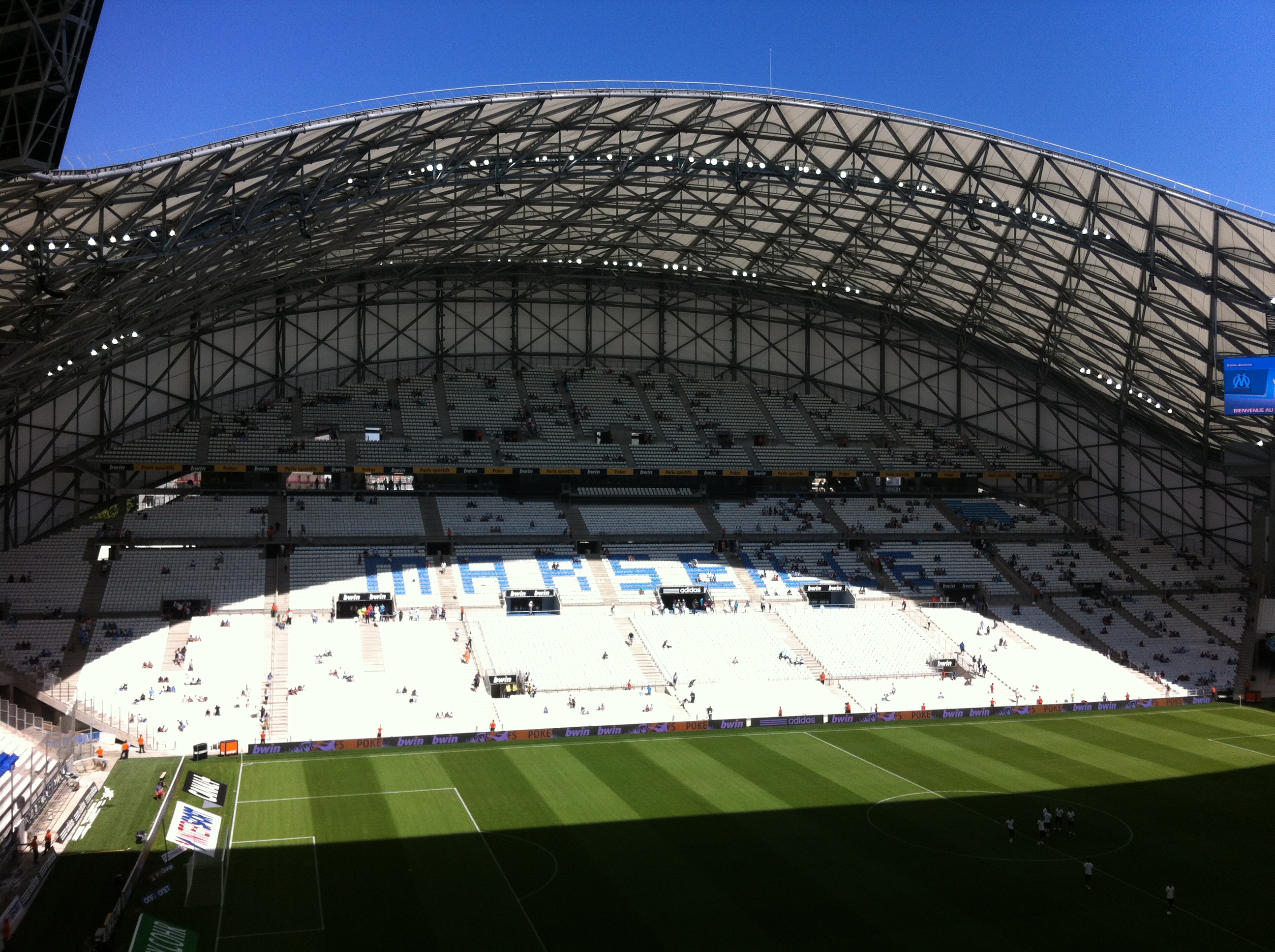 pour le reste je suis toujours fan du stade dans son ensemble, du volume, de l'impression de gigantisme (à ce sujet, prévoir de monter l'équivalent de 5 étages environ pour arriver jusqu'à cette travée, j'ai vu des gens pas jeunes arriver pas frais....)