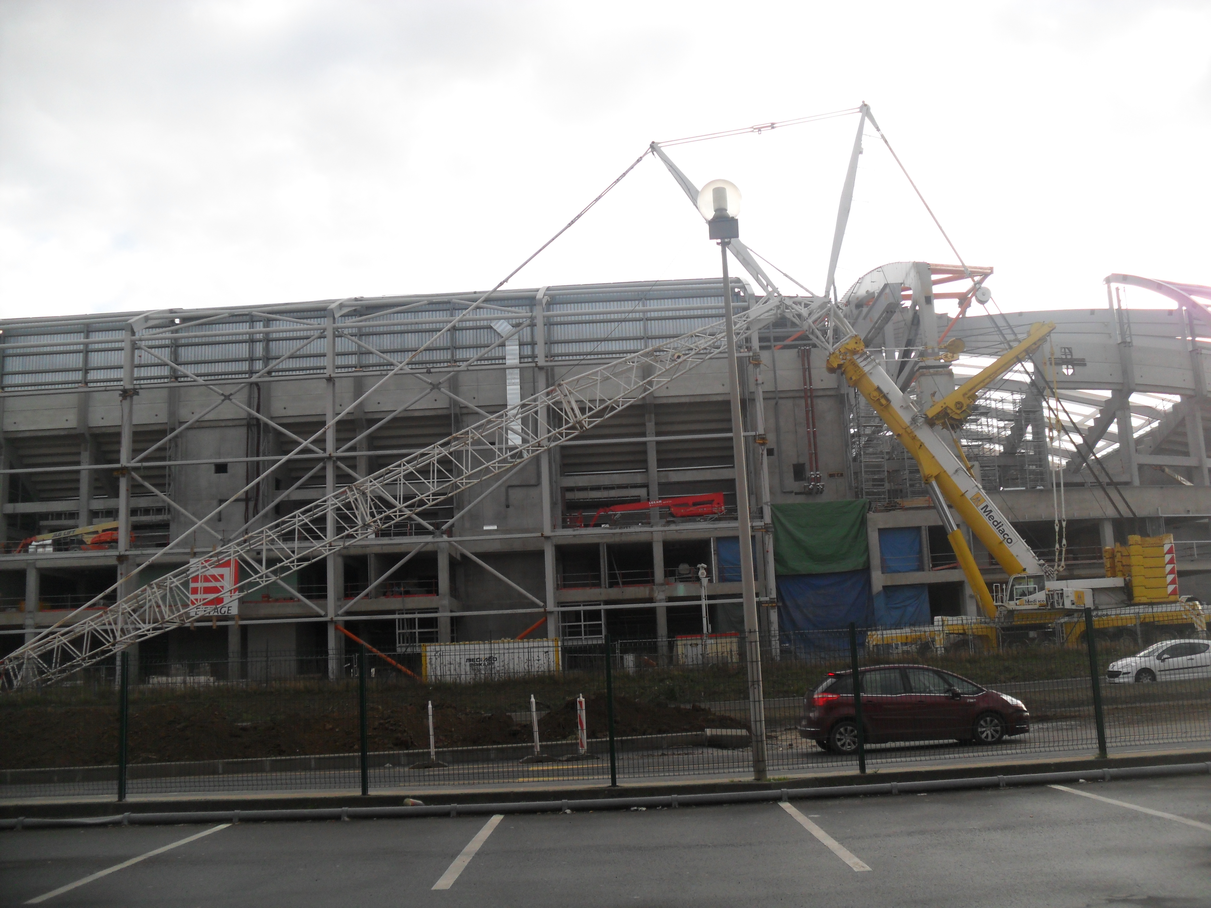 hier a 20 heures quand j ai tiré des photos, il n y avait personne et tout etait eteintNewpom a écrit :Et bien, je ne sais pas à quelle heure ils ont commencés mais, à titre d'information, je suis passé devant le stade aux environs de 2h00 ce matin. Ils avaient posés la première poutre et ils la soudaient au milieu à celle installée il y a quelques semaines. La deuxième avait l'air prête à être montée mais je ne suis pas resté ^^