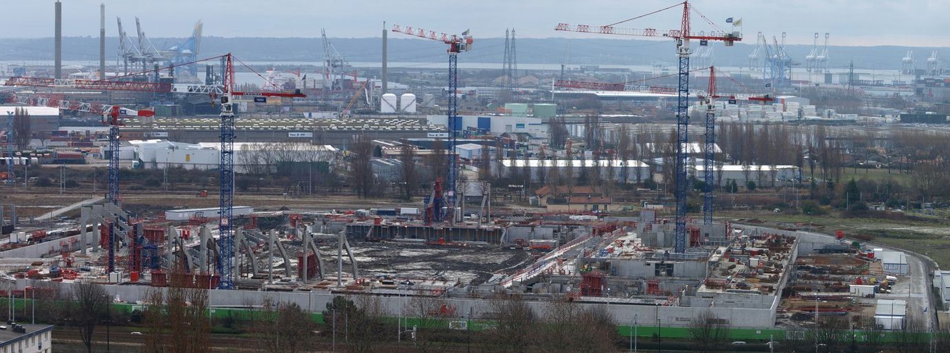 Ça y est, on les aperçoit. Les premiers gradins du futur Grand Stade du Havre, juste en face de l’actuel, Jules-Deschaseaux, se devinent. Il faut dire que les 125 Normands, dont une vingtaine sous contrat de professionnalisation, travaillant actuellement sur « le premier stade français à énergie positive », n’ont pas de temps à perdre.