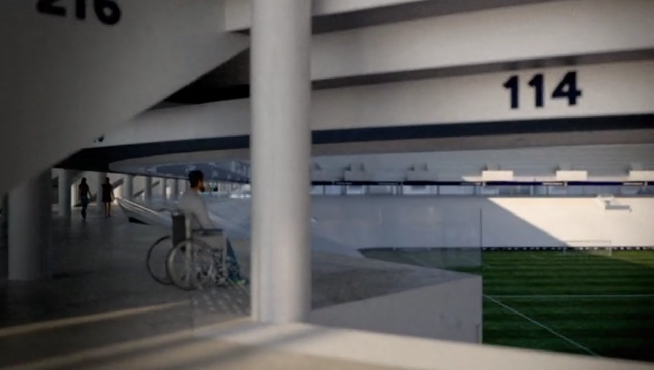 VDI : entrée/sortie sous la tribune nord, 2 accès véhicules pelouse par les tribunes nord/sud
